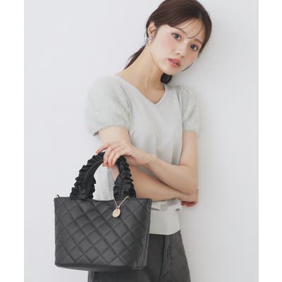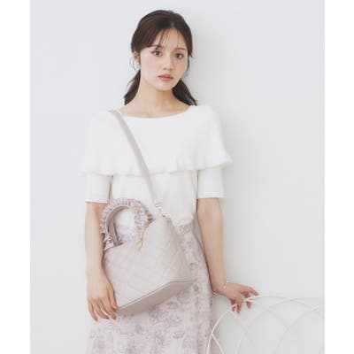 ・エレガントなフリル持ち手とキルティングデザインが特徴の2WAYバッグ。ショルダーストラップ付きで、スタイルに合わせて持ち方を変えられるのが魅力です。