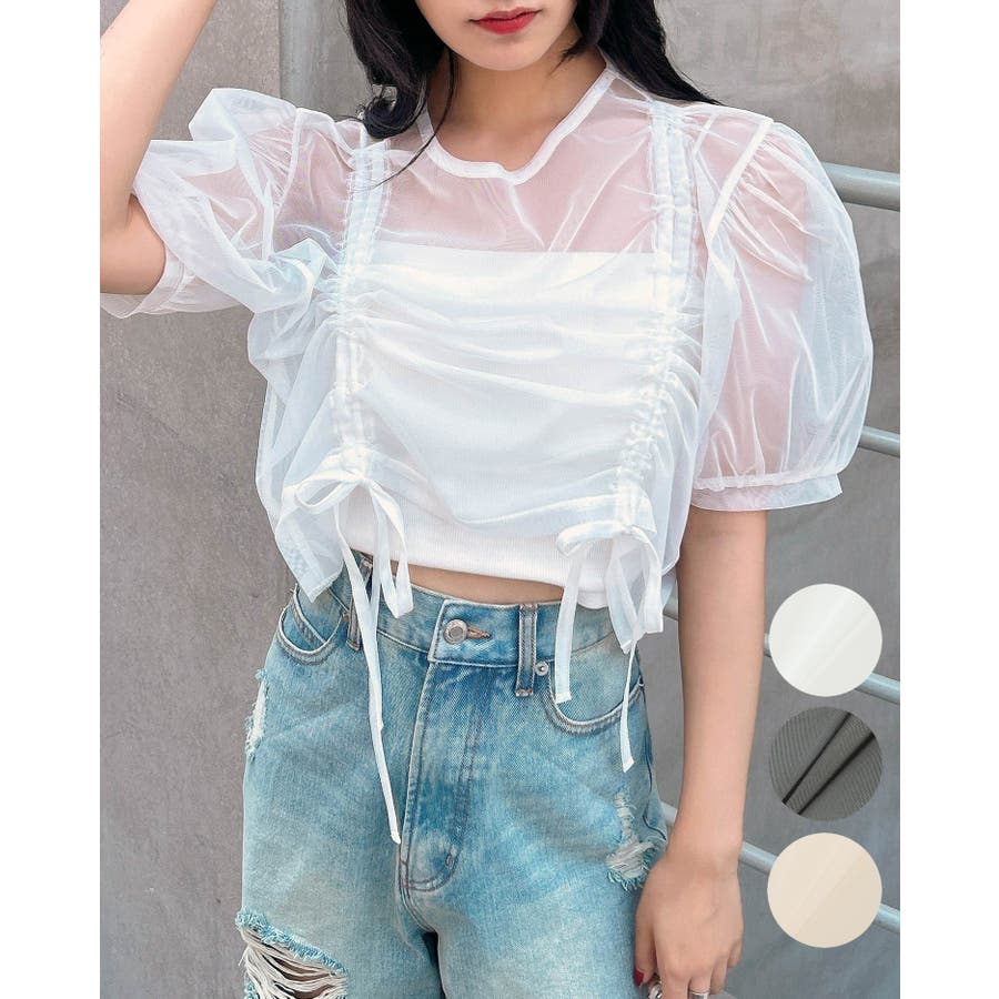 さらっとした風合いとシャリ感が特徴のチュール素材で着心地が良くなっています。
