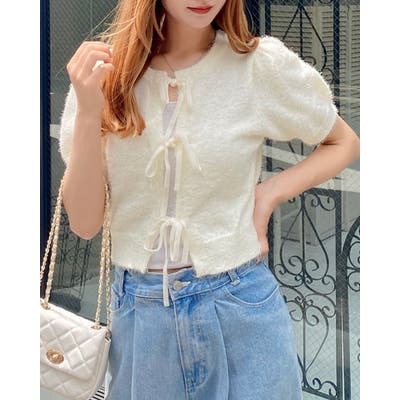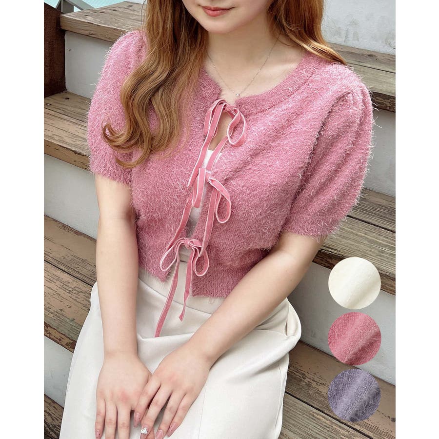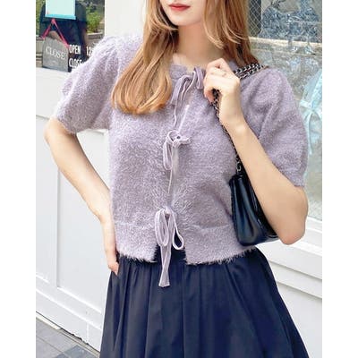 7Gフロントリボンフェザーニットカーディガン