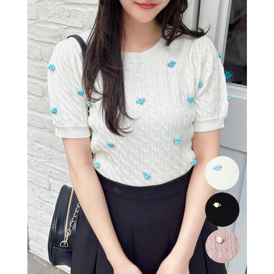 【トレンドのバラモチーフが可愛いデザインニット】