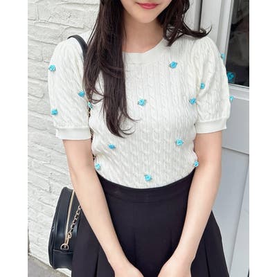 12Gフラワーケーブル半袖ニット