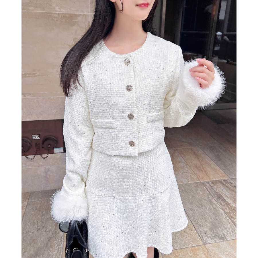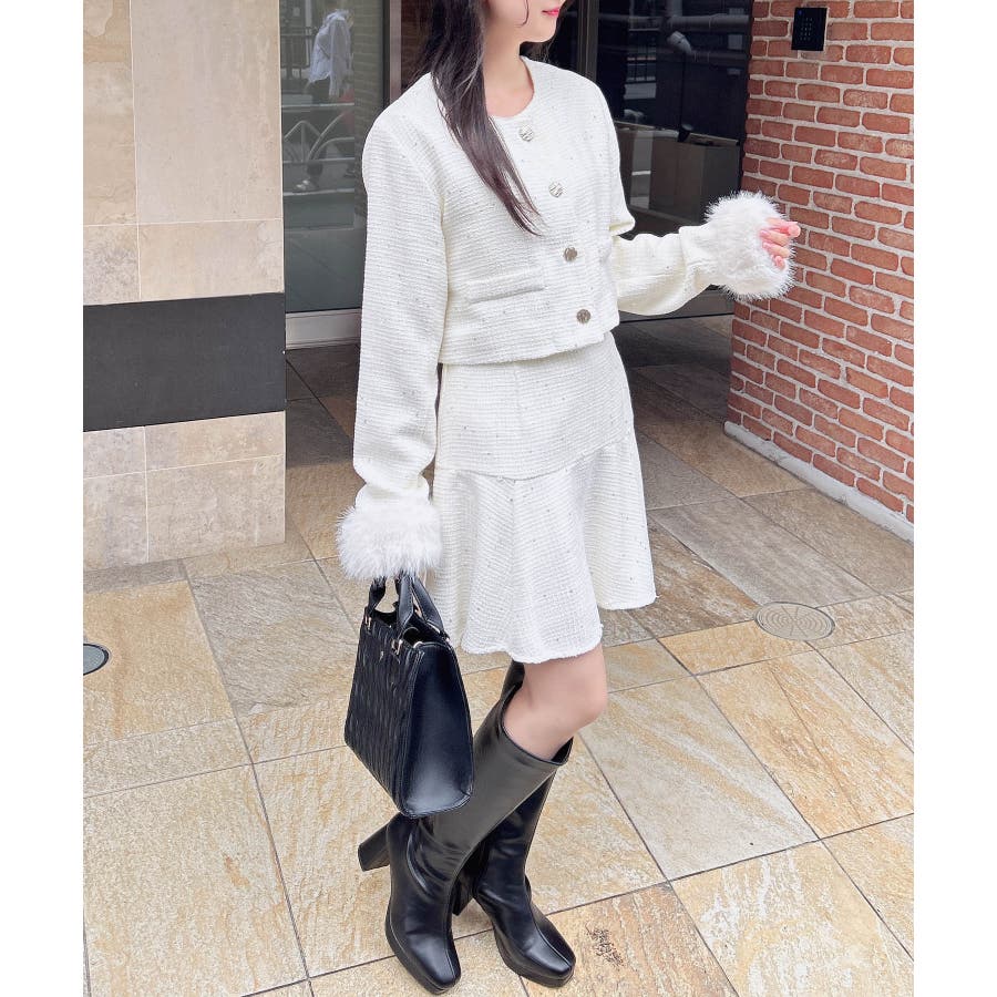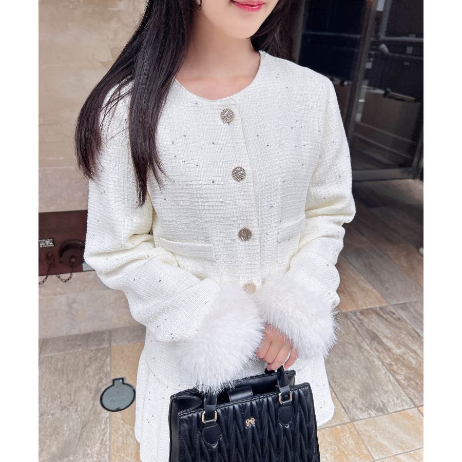 袖ファーツイードJK