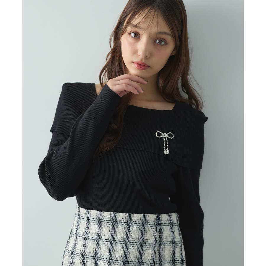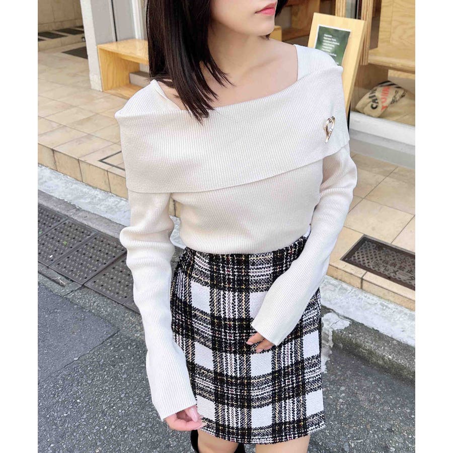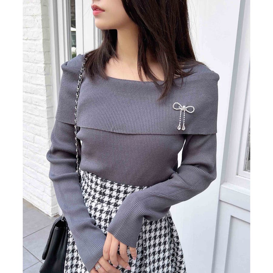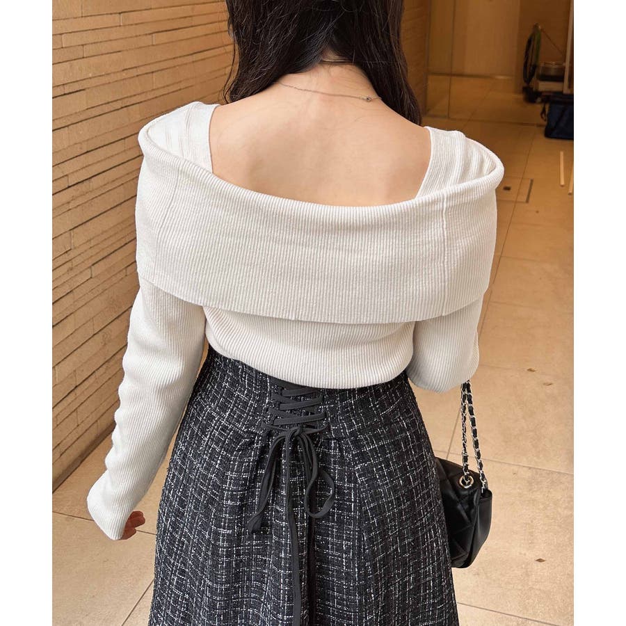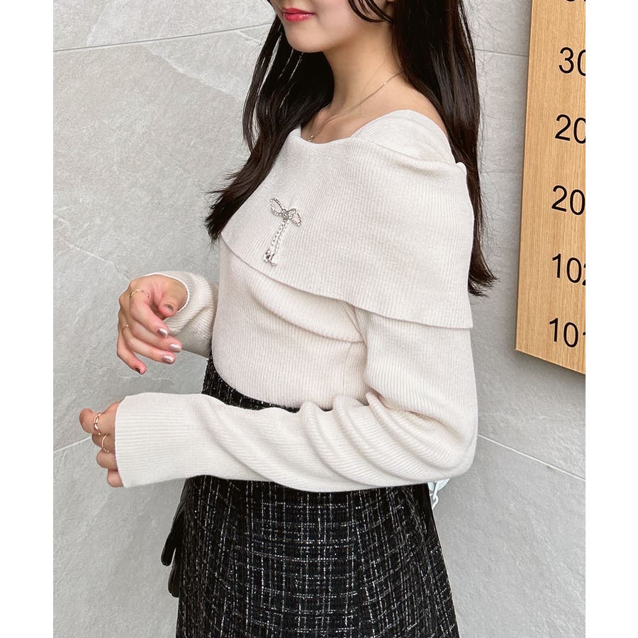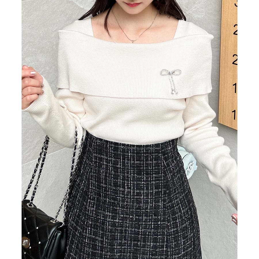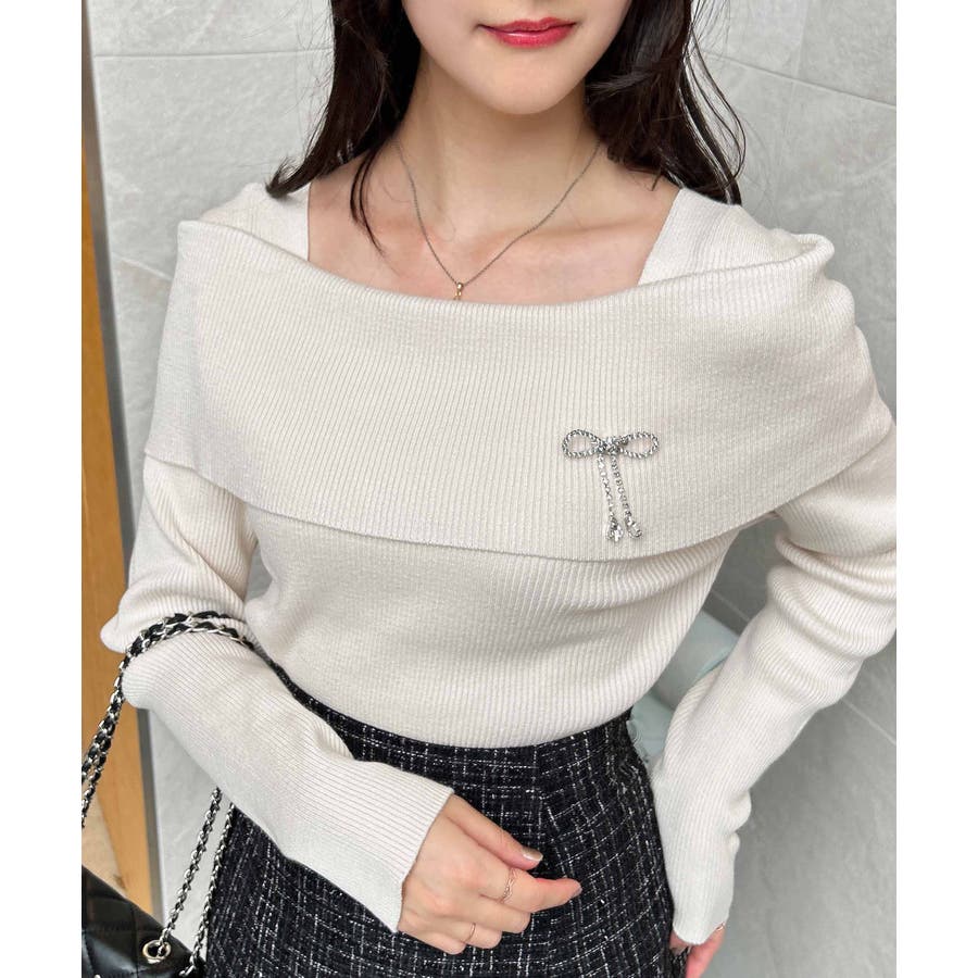 【オフショルデザインで女性らしいシルエットを叶えるフェミニンニット】
