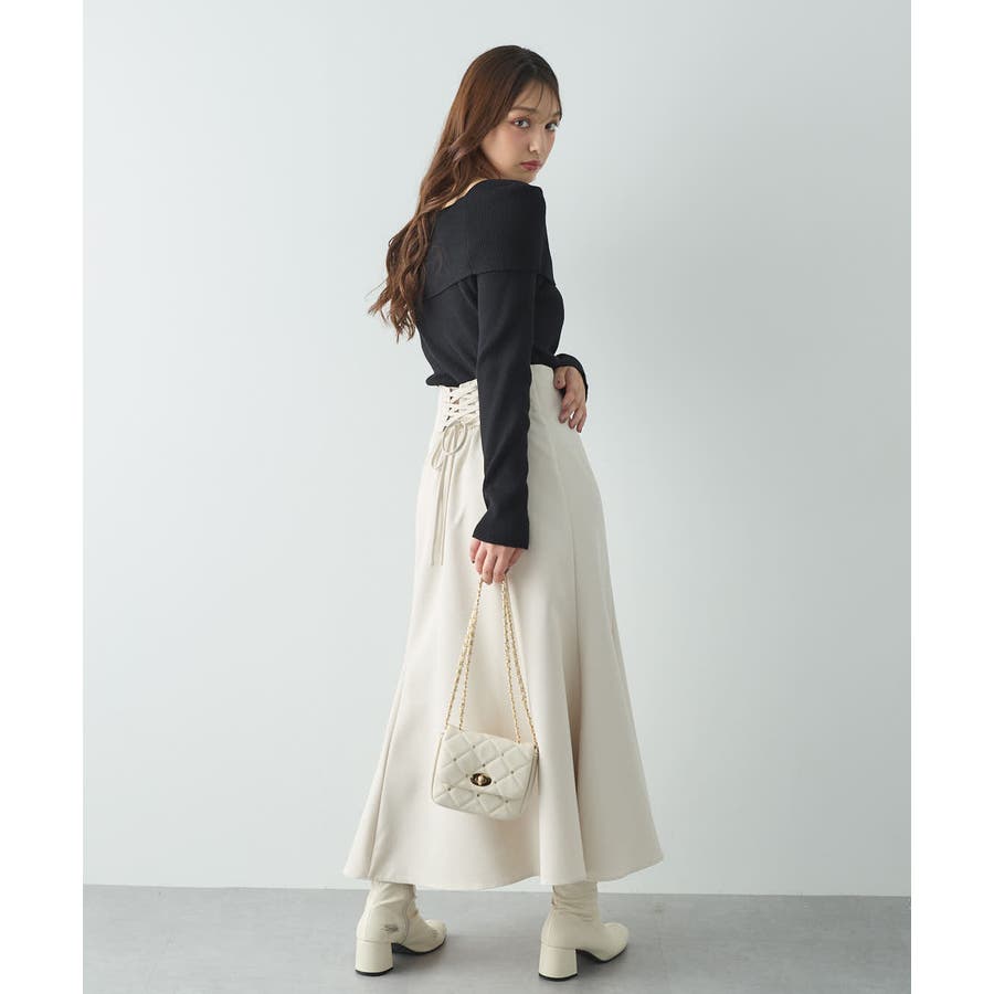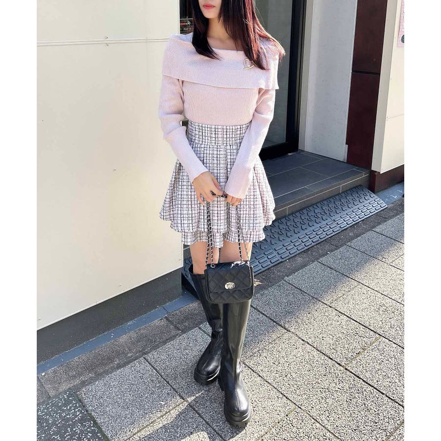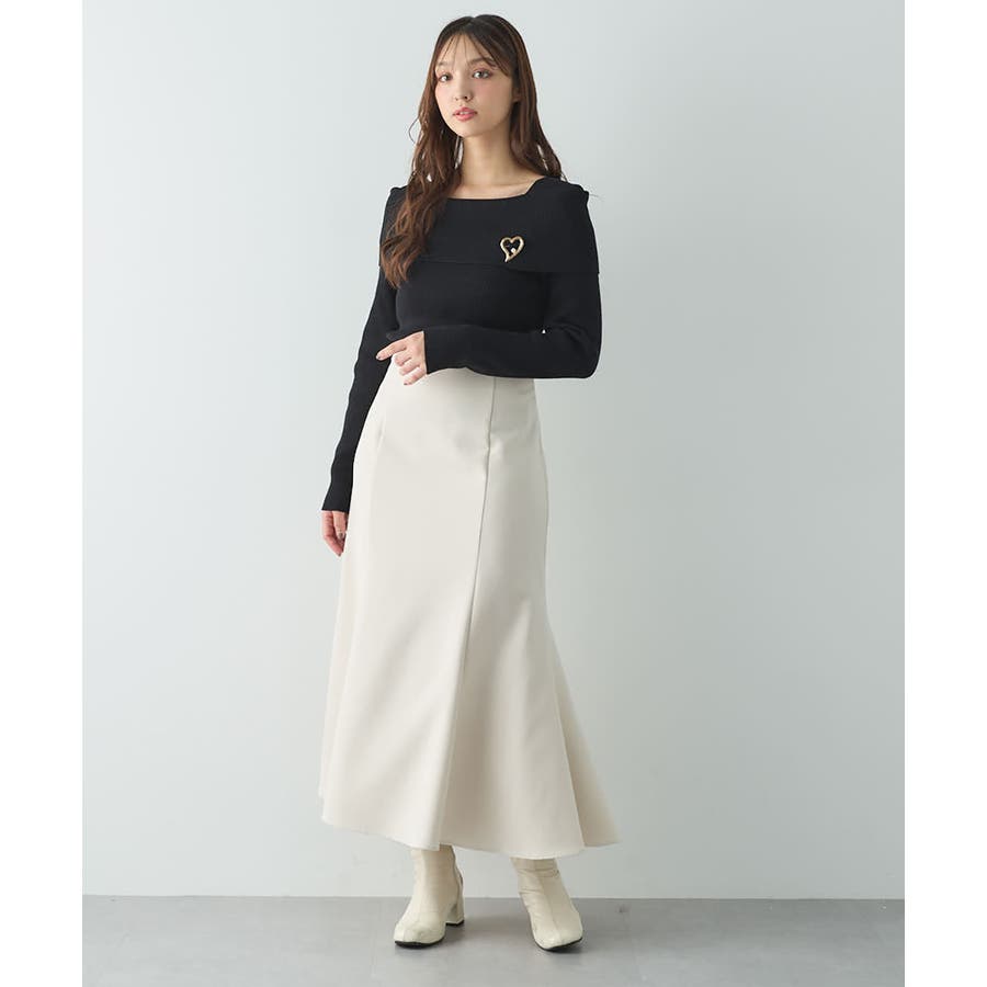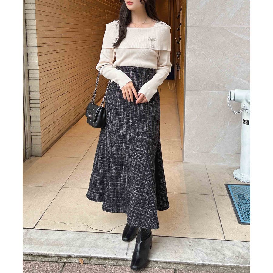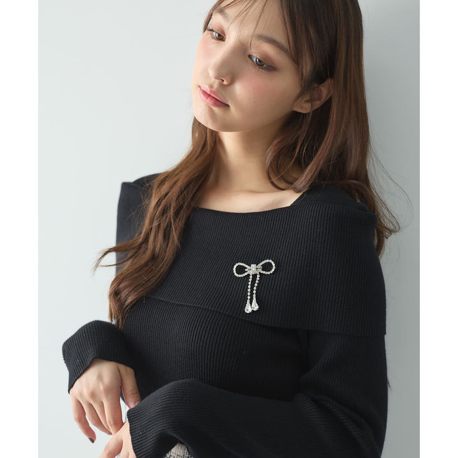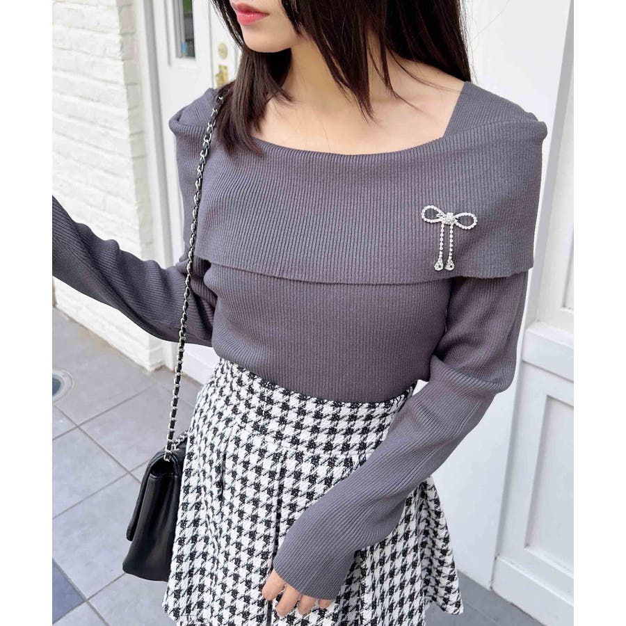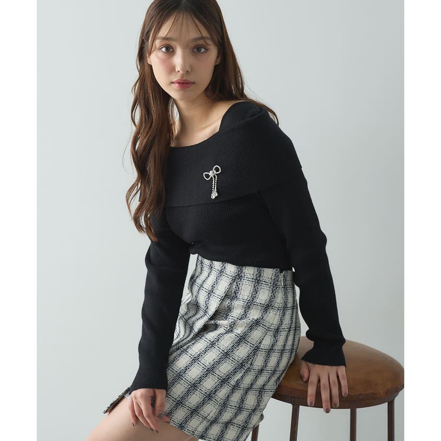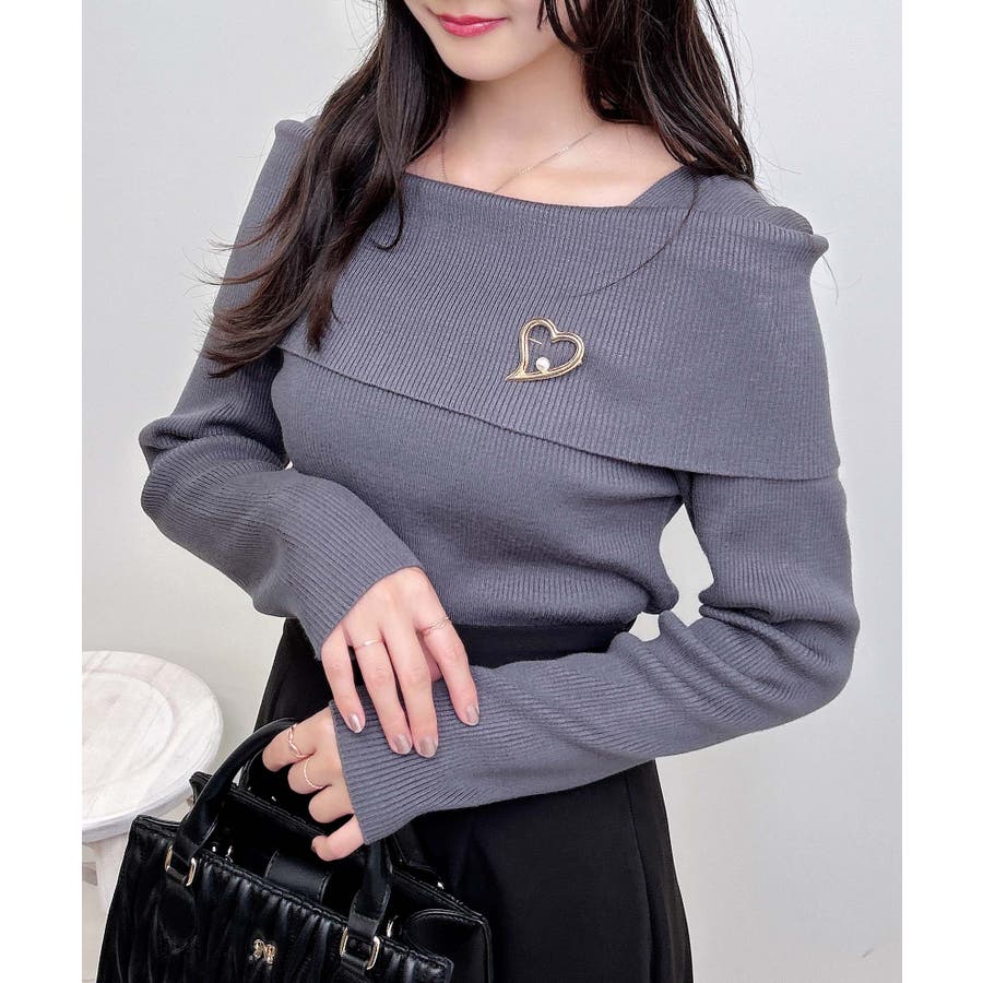 【オフショルデザインで女性らしいシルエットを叶えるフェミニンニット】