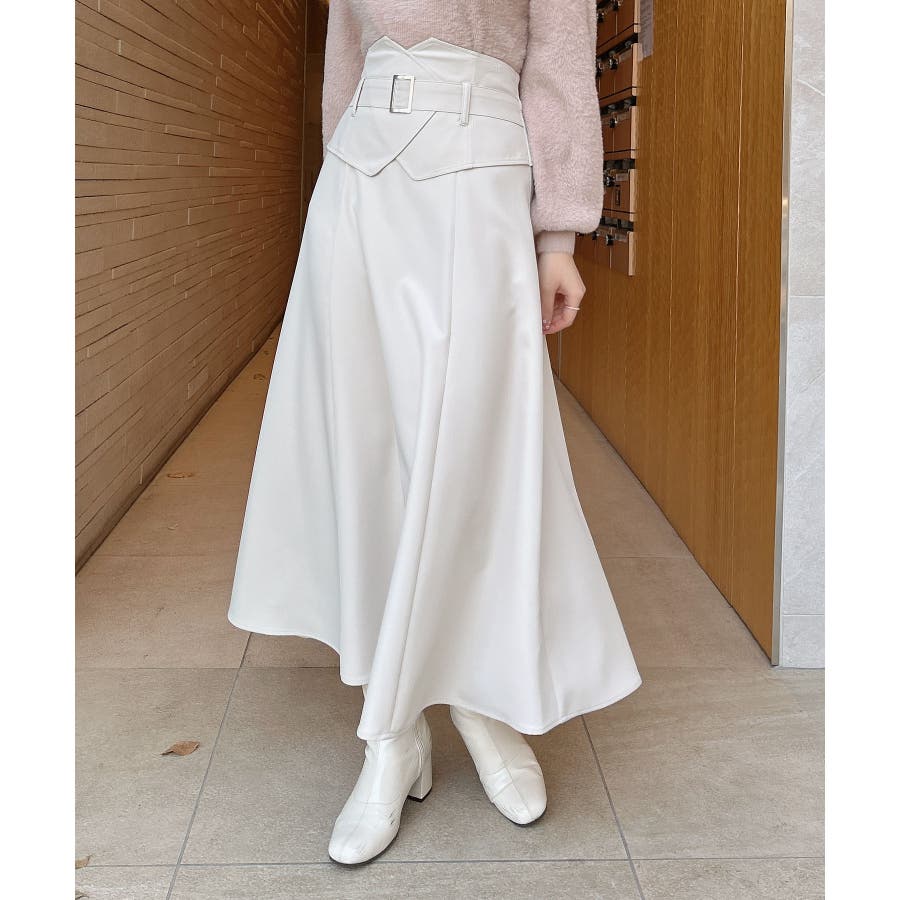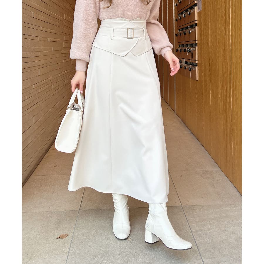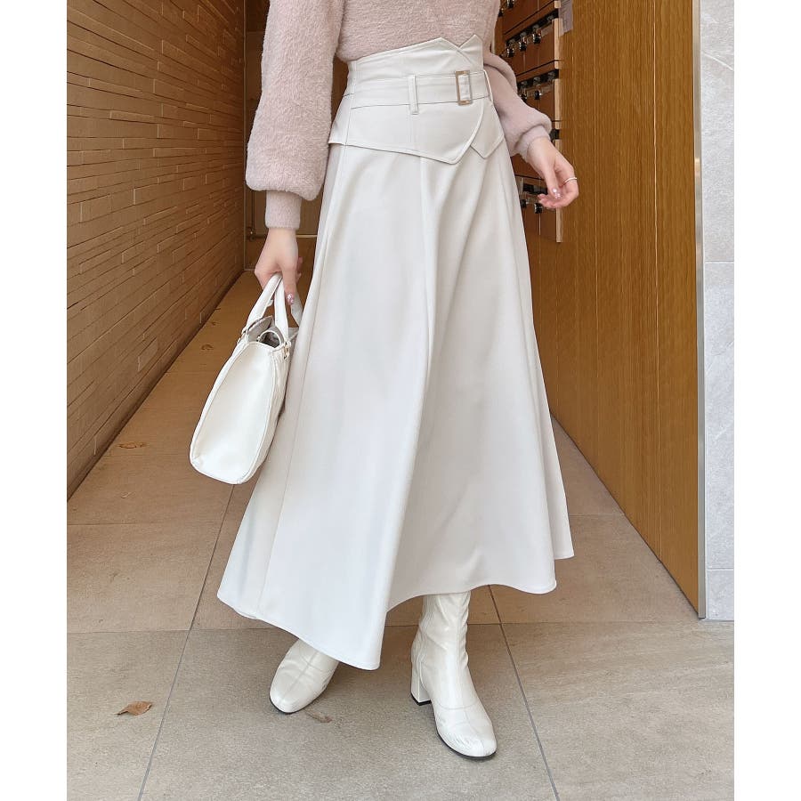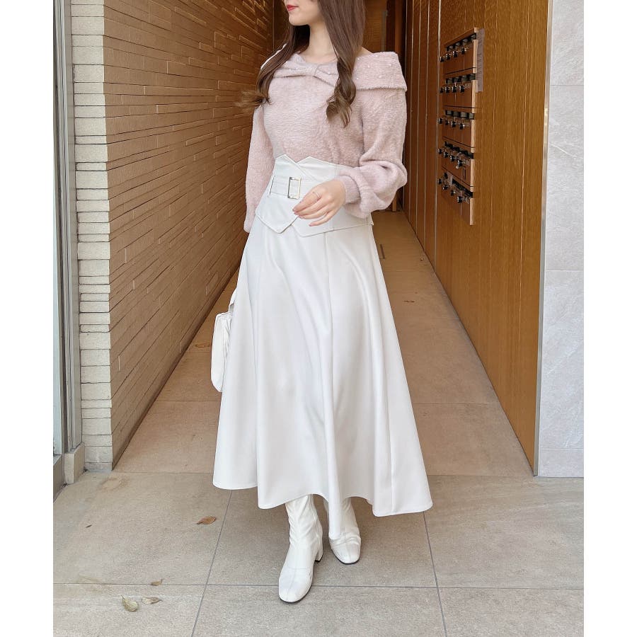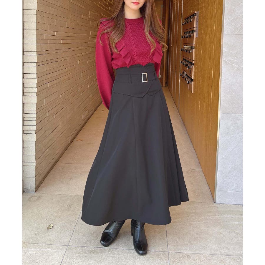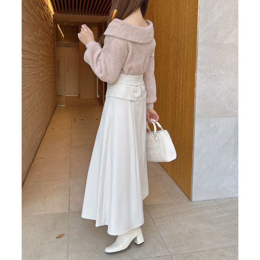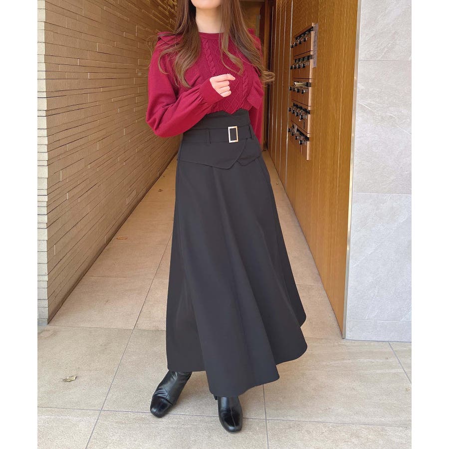 シンプルなニットと合わせるとスカートのデザインを引き立ててくれます。