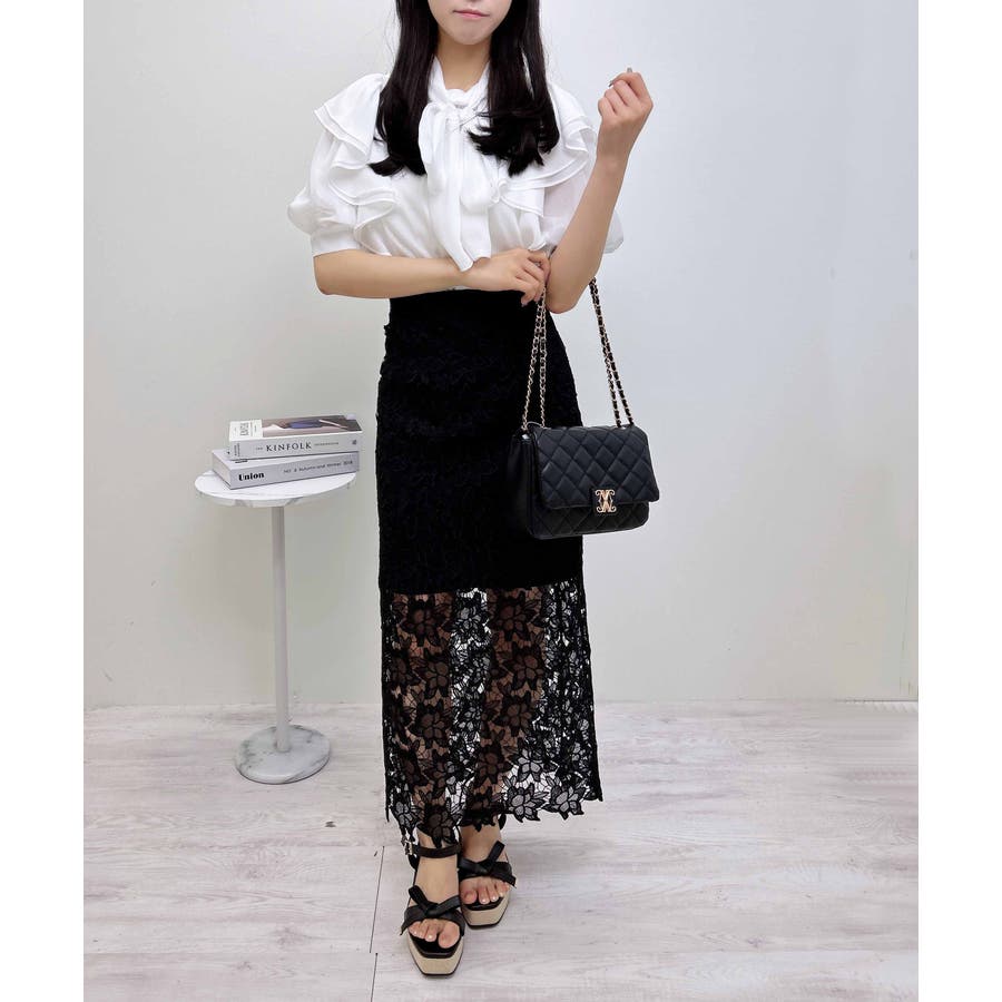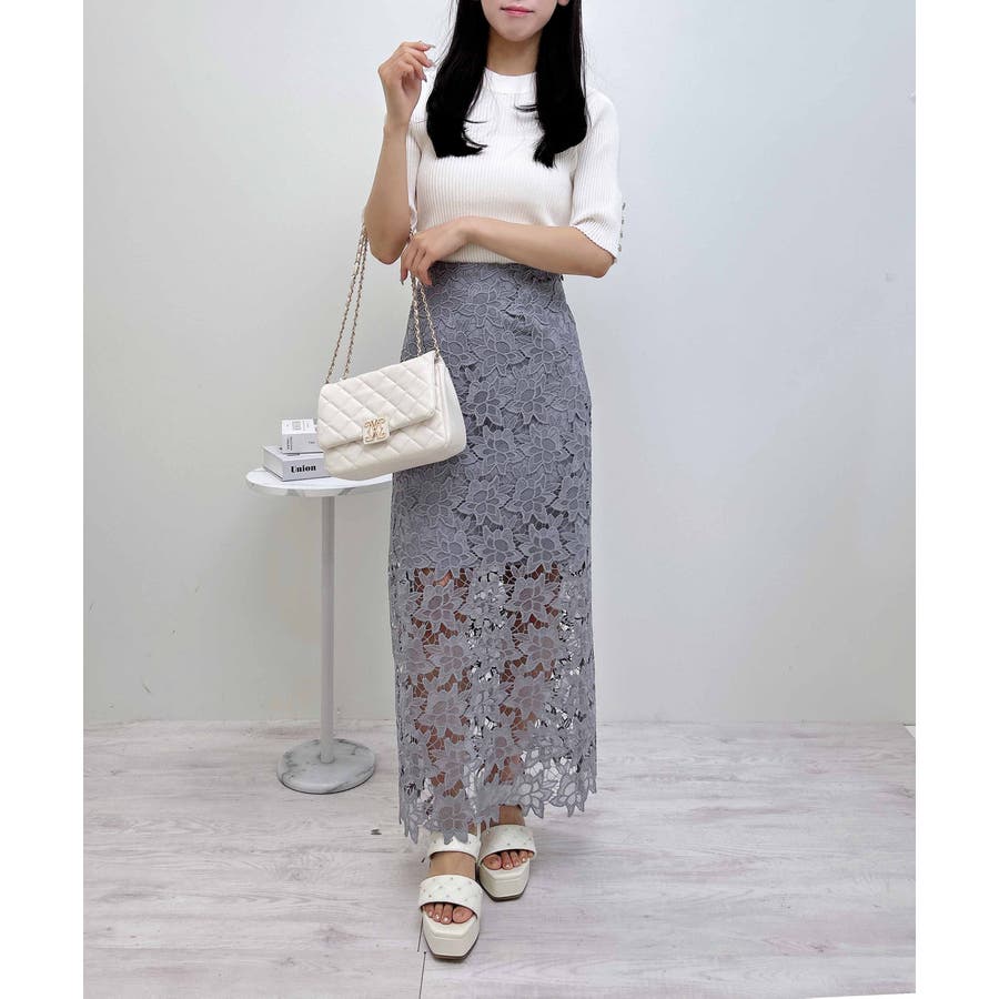 【オンオフ問わずに着まわせる大人エレガントなロング丈のレーススカート】縦のIラインを強調するナローシルエットが気になる腰回りをすっきり見せ、スタイルアップも狙える1枚に仕上げています。バックウエストはゴムになっているのでフィット感も◎。サイドジップで脱ぎ着も楽チンです。長さの違う裏地付きで、ほんのり透ける素肌とのコントラストを楽しめます。・バックウエストゴム・サイドファスナーあり・バックスリットあり【以下クロ参考。カラーにより多少の誤差あり】・透け感:透ける(表地)・伸縮性:なし・生地の厚さ:薄め・裏地:あり