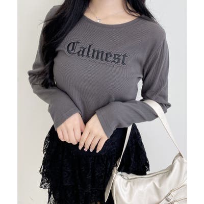 【ショート丈で好バランスのトレンドコーデが完成するロンT】フロントにあしらったロゴは別布を貼り付け、立体感のあるアクセントに。ボディラインに沿うコンパクトなシルエットでスタイルアップも狙えます。1枚ではもちろん、シャツやジャケットなどのインにも大活躍。伸縮性のあるやわらかなリブ生地で着心地も快適です。【以下オフホワイト参考。カラーにより多少の誤差あり】・透け感:やや透ける・伸縮性:あり・生地の厚さ:普通・裏地:なし