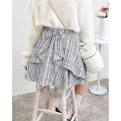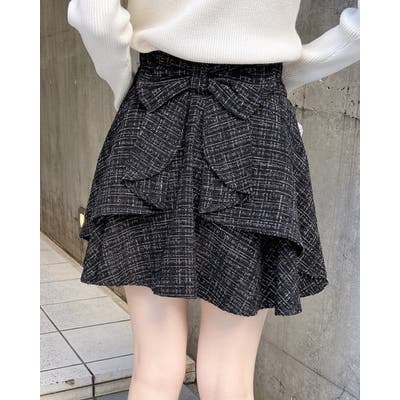 たっぷりとしたドレープとフレアシルエットがレディなスカパン。バックにあしらった大きなリボンで後ろ姿も抜かりナシのアイテムです。ラメを織り込んだ上品なツイード生地で仕立てているので、オンオフ問わずに活躍。伸縮性のあるやわらかなパンツ型の裏地がドッキングしているので1枚でも安心です。脱ぎ着しやすいサイドジップ付き。・バックウエストゴム・サイドファスナーあり【以下オフ/ツイード参考。カラーにより多少の誤差あり】・透け感:やや透ける(表地)・伸縮性:なし(表地)・生地の厚さ:普通・裏地:あり