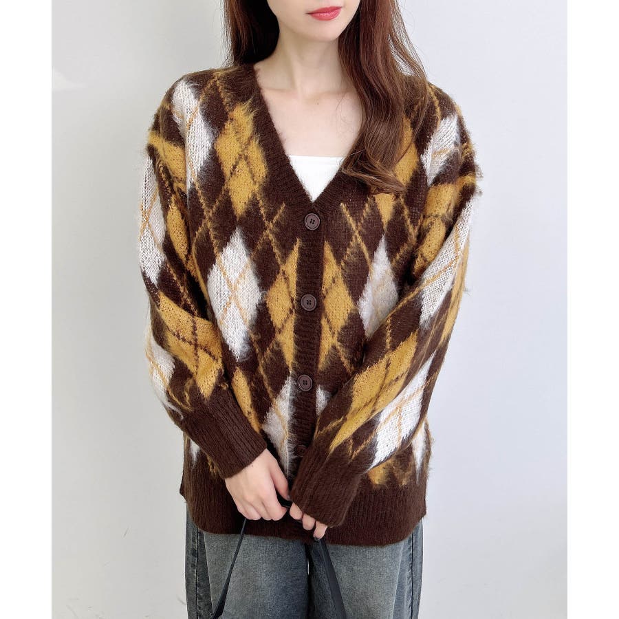 7Gアーガイル柄JQロングニットカーディガン