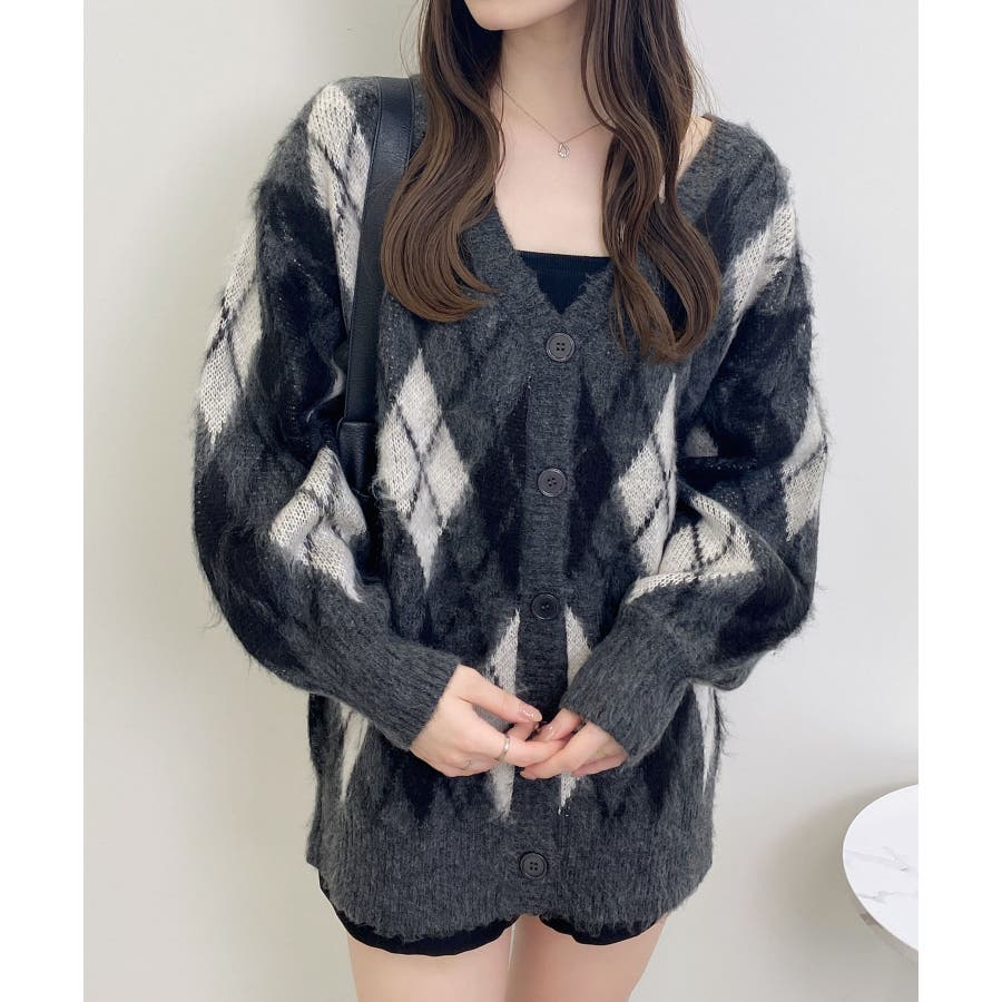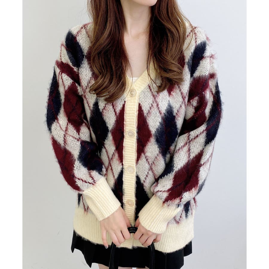 "【見た目にもあたたかなふんわりニットは大きなアーガイル柄が印象的】
