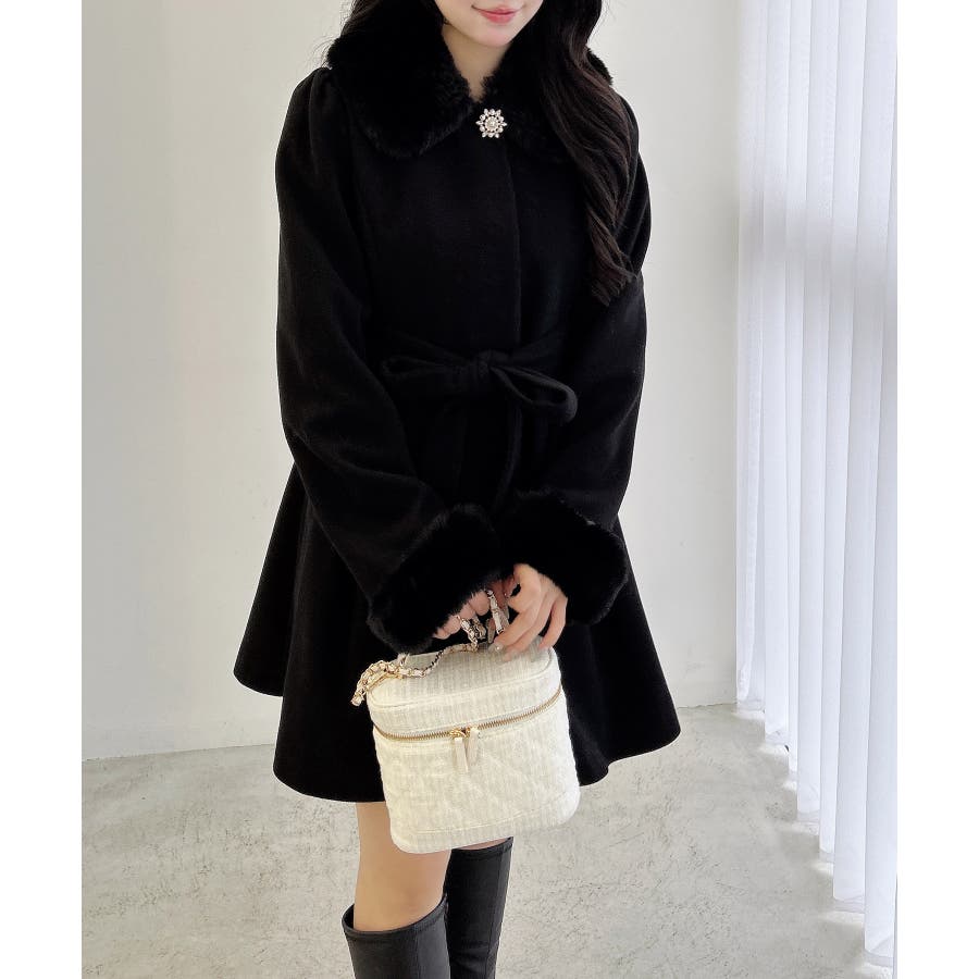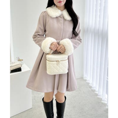 ファーをつければとことん可愛い着こなしに、ファーを外せばきれいめフェミニンスタイルに♡