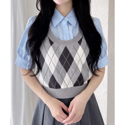 アーガイルニットベスト+シャツセット