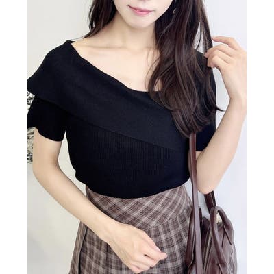 アシメネックデザインがデコルテを綺麗に魅せ、おしゃれモードを格上げしてくれる一枚。
