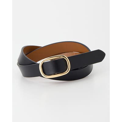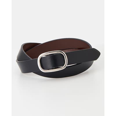 シンプルで使いやすいベルトはワードローブの必須アイテム。すっきりとしたオーバル型のバックルがスタイリッシュなアクセントになってくれます。細めの帯はパンツに合わせるのはもちろん、ワンピースなどのウエストマークにもぴったり。コーディネイトに合わせてリバーシブルで使えるデザイン性にも注目です。・合成皮革