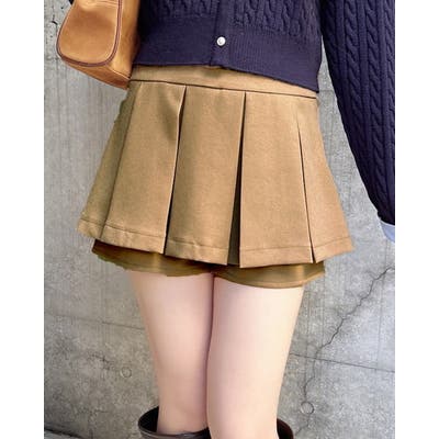ショートパンツにスカートを重ねたようなレイヤードデザインのスカパン。幅広のボックスプリーツですっきりとした印象に。合わせやすい無地で着回し力抜群のアイテムに仕上げています。バックウエストはゴムになっているのでフィット感も◎サイドジップ付きで脱ぎ着も楽チンです。・バックウエストゴム・サイドファスナーあり【以下グレー参考。カラーにより多少の誤差あり】・透け感:透けない・伸縮性:なし・生地の厚さ:普通・裏地:あり