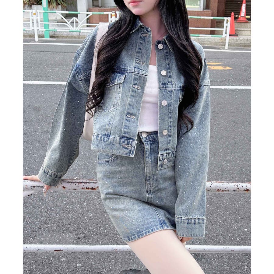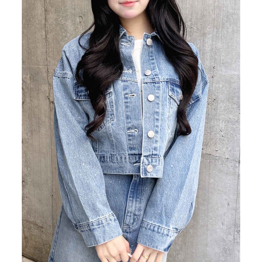 【これからの季節に大活躍!ビジュー付きGジャン】▼Designキラキラ光るビジューが華やかな印象を与えてくれるこれからの季節にぴったりなアイテムです。短め丈なので着こなしにトレンド感をプラスしてくれます。上半身をコンパクトに見せてくれるので足長効果も抜群◎▼Styling同生地のスカートを合わせてセットアップに♪フリルスカートやロングスカートを合わせればフェミニンで可愛らしいスタイリングも楽しめます♡こちらの商品はセットアップで着用できます♡セットアップ対応アイテム ・1261-300074【ラインストーンデニムミニスカート】 ⇒こちら ▼Recommend・ラメ・ラインストーン・ビジュー・セットアップ・アウター・ジャケット●デニム生地のため水通しお洗濯の際には、必ず単独でお願いいたします。 水通しや洗濯時には必ず染料より色落ちいたします。●濡れた場合など特に摩擦による色移りも生じる可能性がございます。