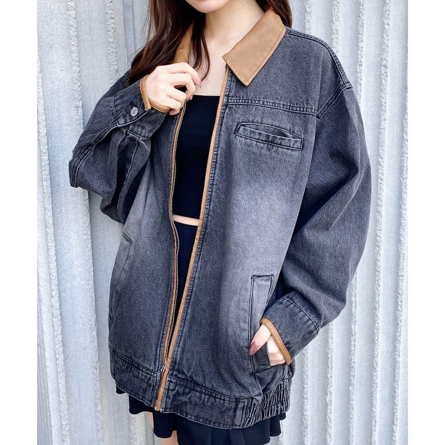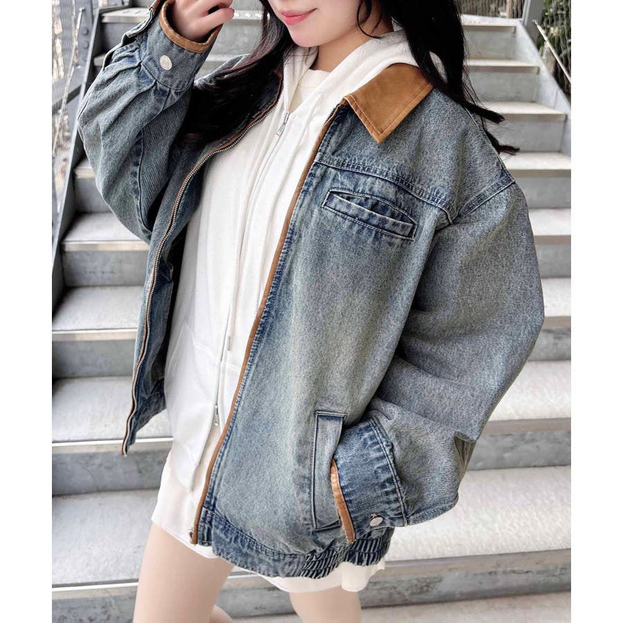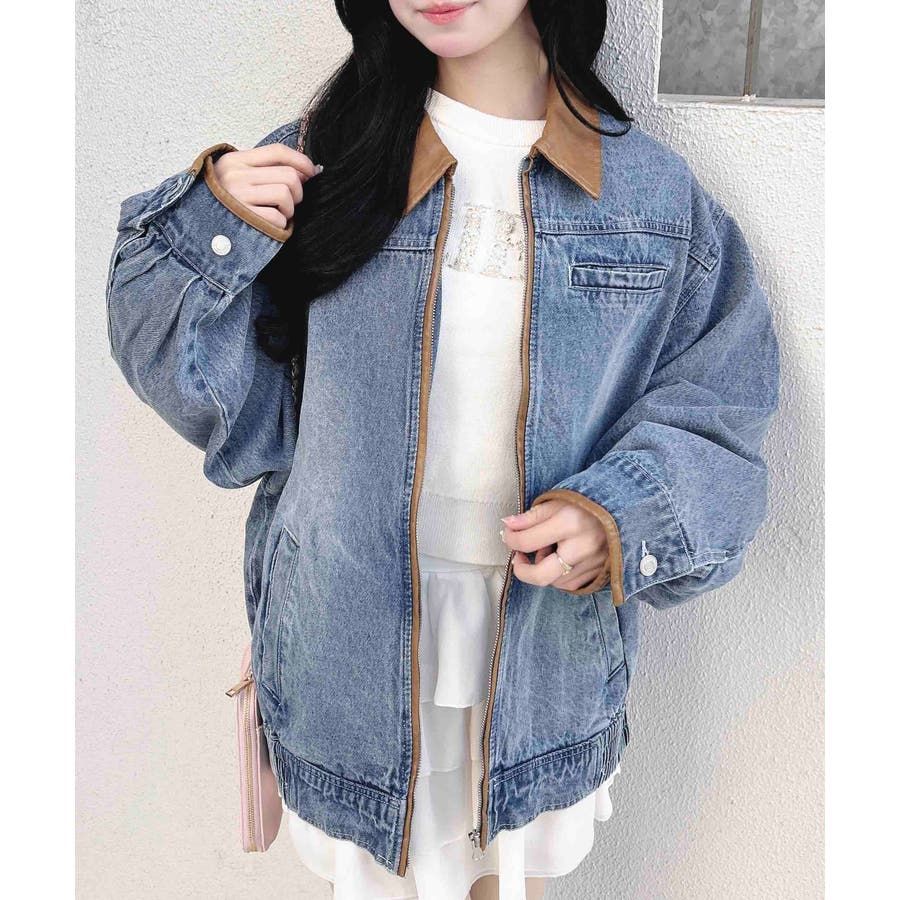 【配色デザインがポイントのデニムジャケット】▼Designトレンドの配色デザインがポイントのデニムジャケットです。バイカラーの襟とパイピングデザインが全体を引き締め、カジュアルすぎず上品な印象を与えてくれるアイテムです。オーバーサイズなので厚手のニットやスウェットの上にも羽織れます。▼Stylingミニスカートを合わせたカジュアルガーリーなコーデに。フード付きのシャツやパーカーとのレイヤードスタイルもおすすめ♪▼Recommend・デニムジャケット・Gジャン・フェイクレザー・パイピング・オーバーサイズ・カジュアル●デニム生地のため水通しお洗濯の際には、必ず単独でお願いいたします。 水通しや洗濯時には必ず染料より色落ちいたします。●濡れた場合など特に摩擦による色移りも生じる可能性がございます。