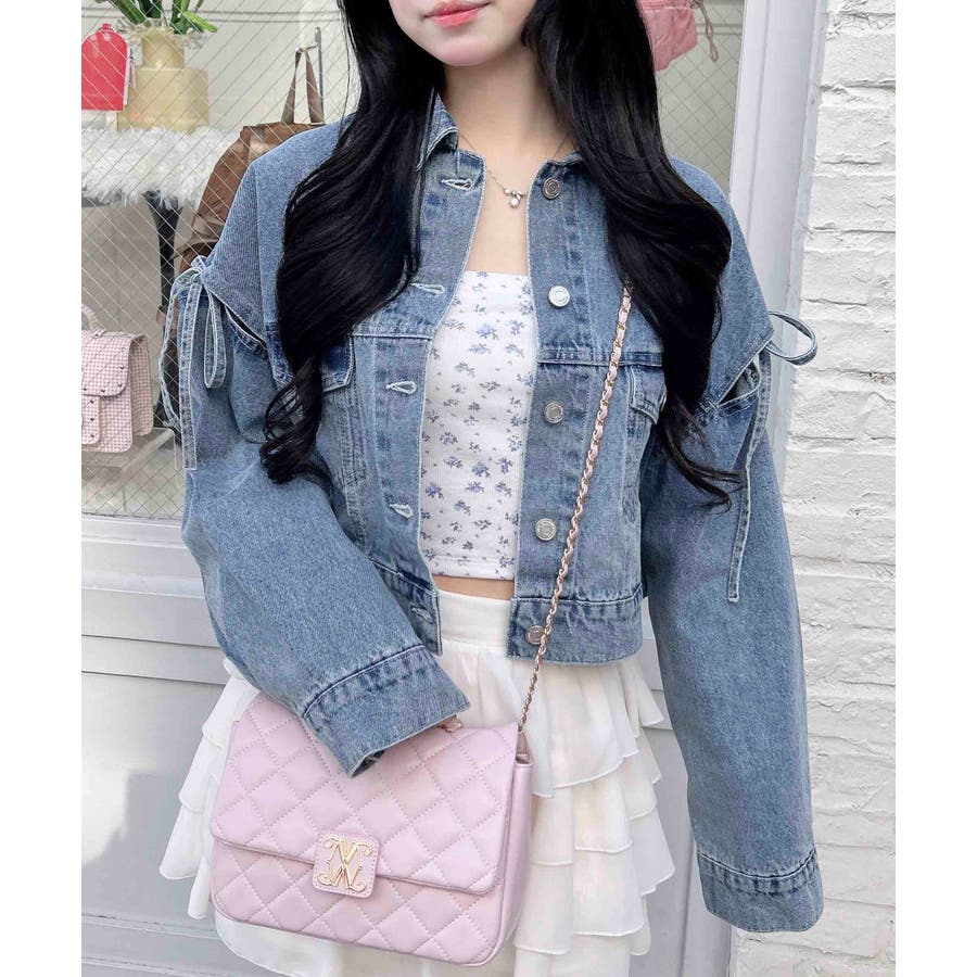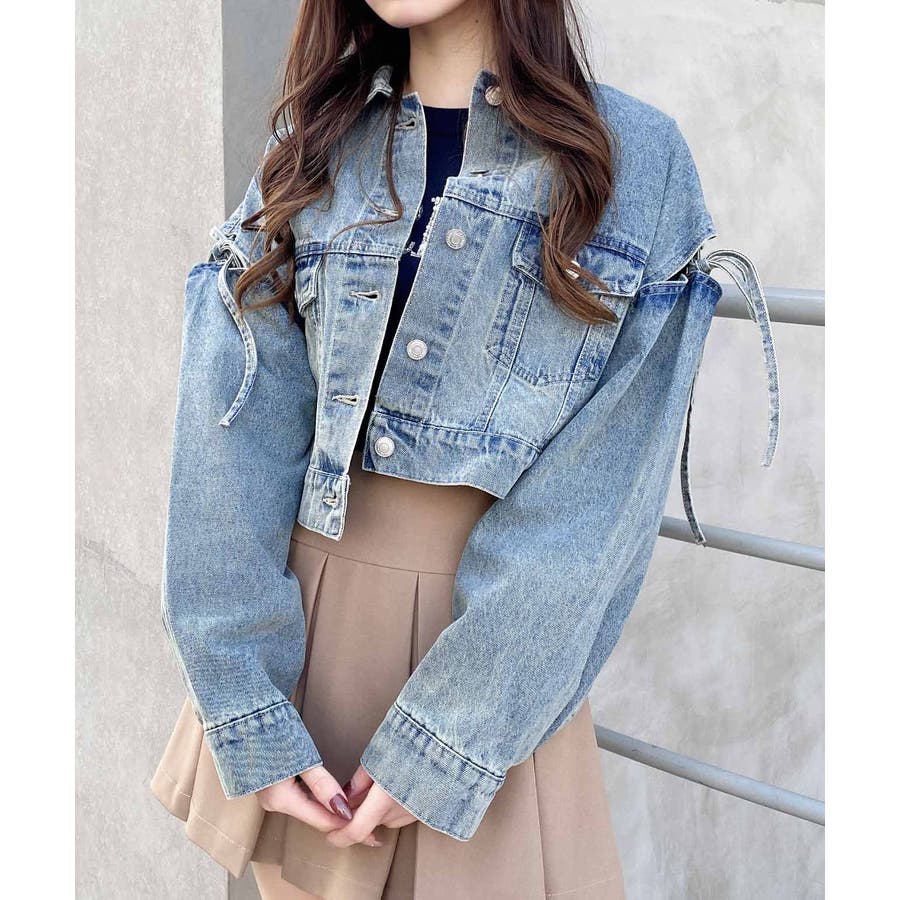 【袖のリボンがかわいすぎる♡デニムジャケット】▼Design王道のカジュアルアイテムにガーリーさをプラスしてくれる袖の切込みデザインとリボンがポイントのアイテム。ゆったり幅×短め丈のトレンドライクなシルエット◎▼Stylingふんわりとしたスカートやワンピースと合わせたガーリーなコーデがおすすめ♡ミニプリーツスカートと合わせれば韓国風のスタイルも楽しめます。▼Recommend・カジュアル・デニムジャケット・Gジャン・リボン・クロップド丈●デニム生地のため水通しお洗濯の際には、必ず単独でお願いいたします。 水通しや洗濯時には必ず染料より色落ちいたします。●濡れた場合など特に摩擦による色移りも生じる可能性がございます。