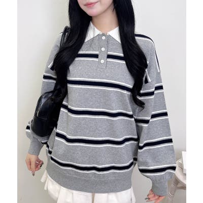 "【ゆるっとしたシルエットがかわいい♡ボーダーポロニット】