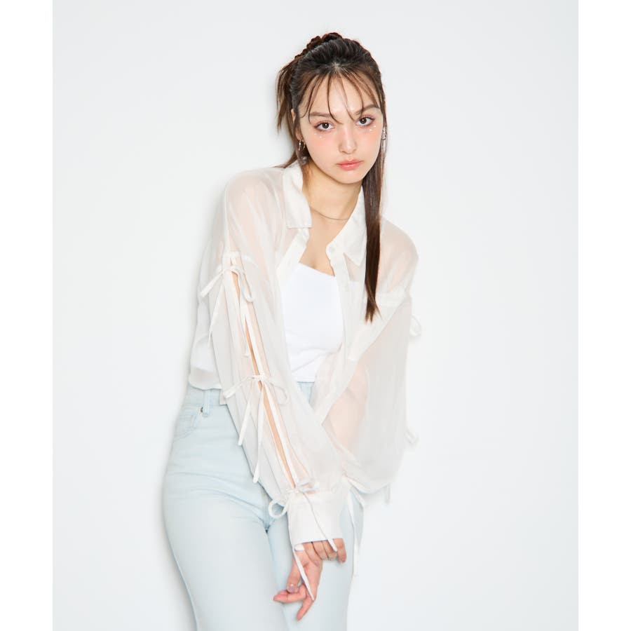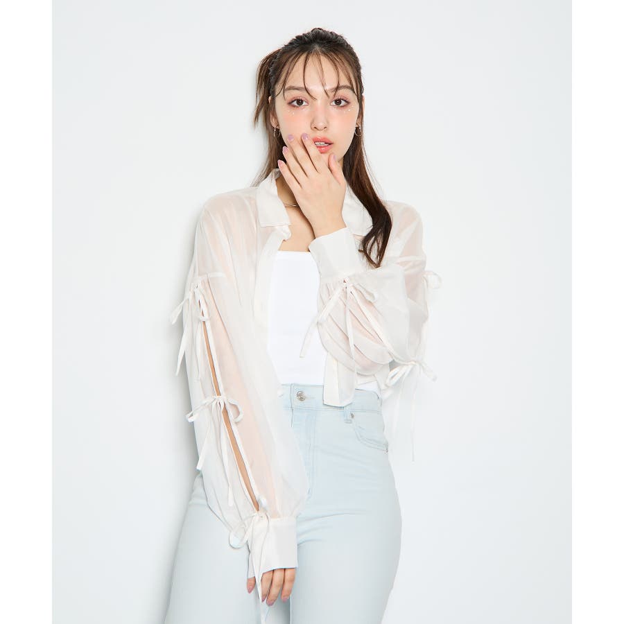 サッと羽織るだけで華やかなカラーアクセントになるシアーシャツ。ゆったりとした身頃とショート丈でトレンドライクに仕上げています。さらりとした薄手の生地は着心地も快適。袖部分に大胆なカッティングを施し、リボンをあしらってアクセントにしています。胸元にはポケット付き。大人っぽいキレイカラーが揃っています。・ポケットあり【以下グレー参考。カラーにより多少の誤差あり】・透け感:透ける・伸縮性:なし・生地の厚さ:薄め・裏地:なし