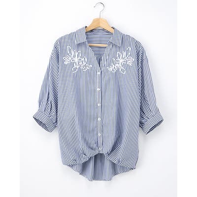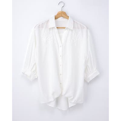 【ロープのようなコード刺繍を胸元にあしらったシャツ】