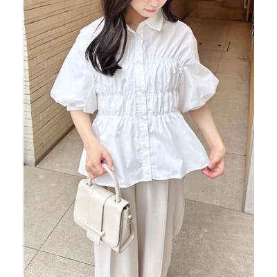 【シャーリングとバルーンスリーブで、1枚で華やぐフェミニンブラウス。】