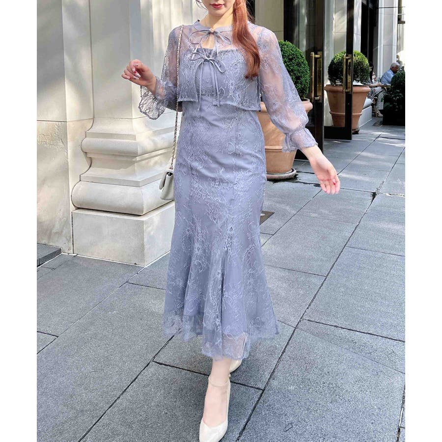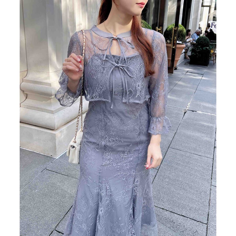 【ショート丈レースブラウスとキャミワンピースのセットドレス】