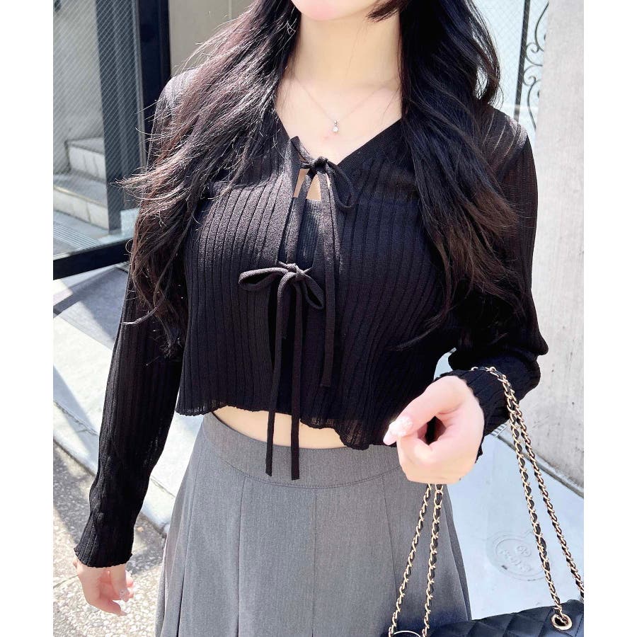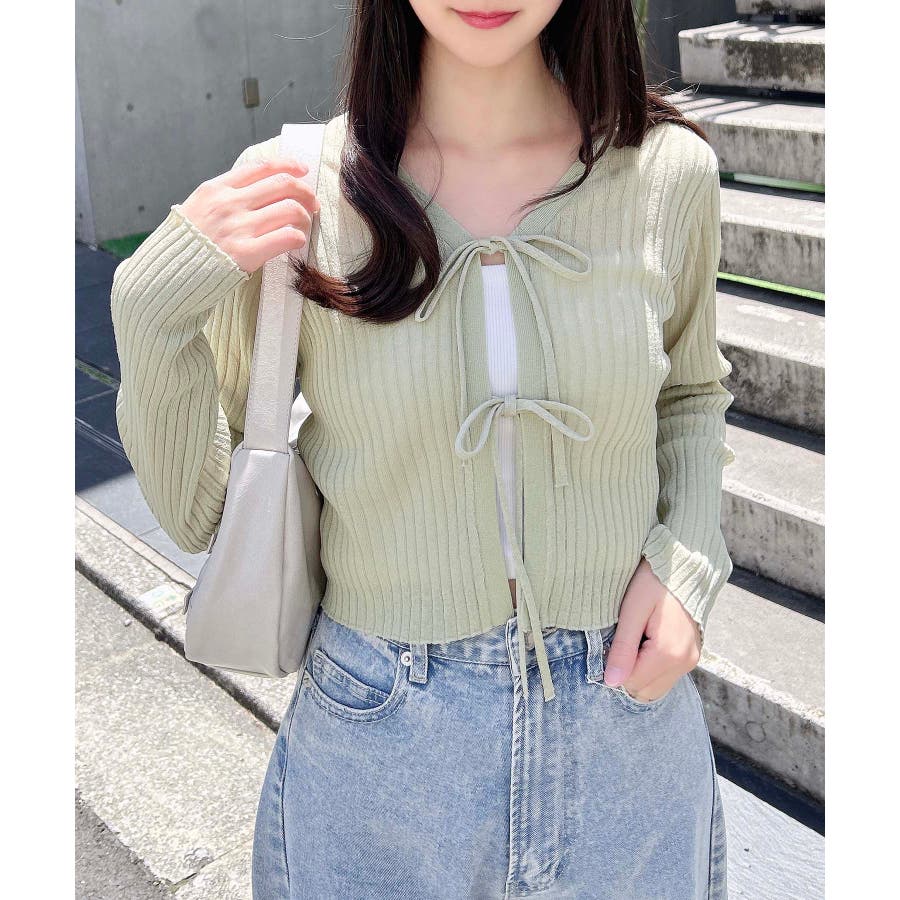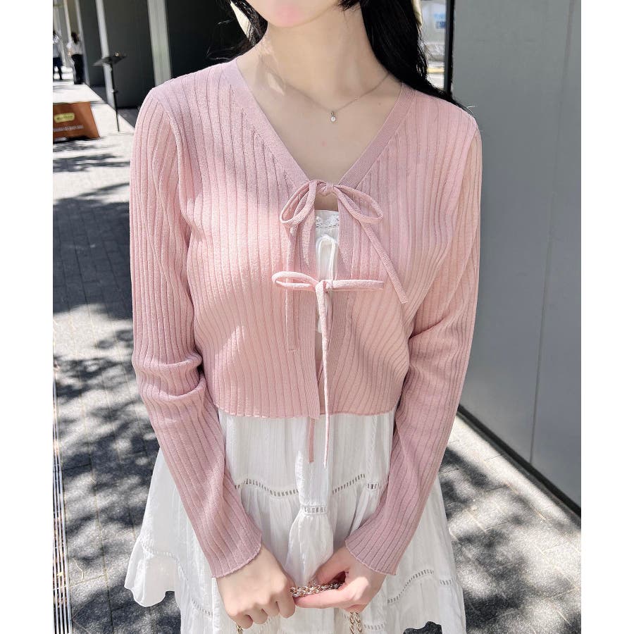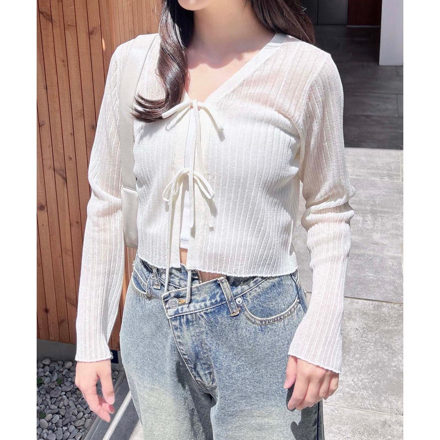 【シアーの透け感がかわいい大人気フロントリボンカーディガン】