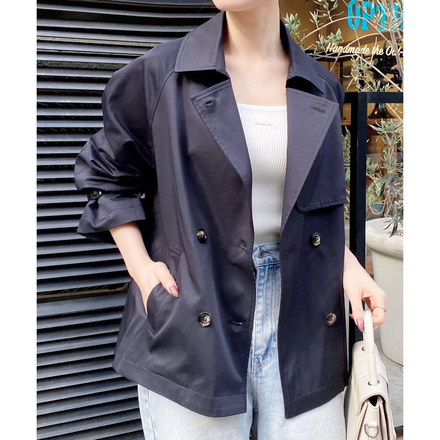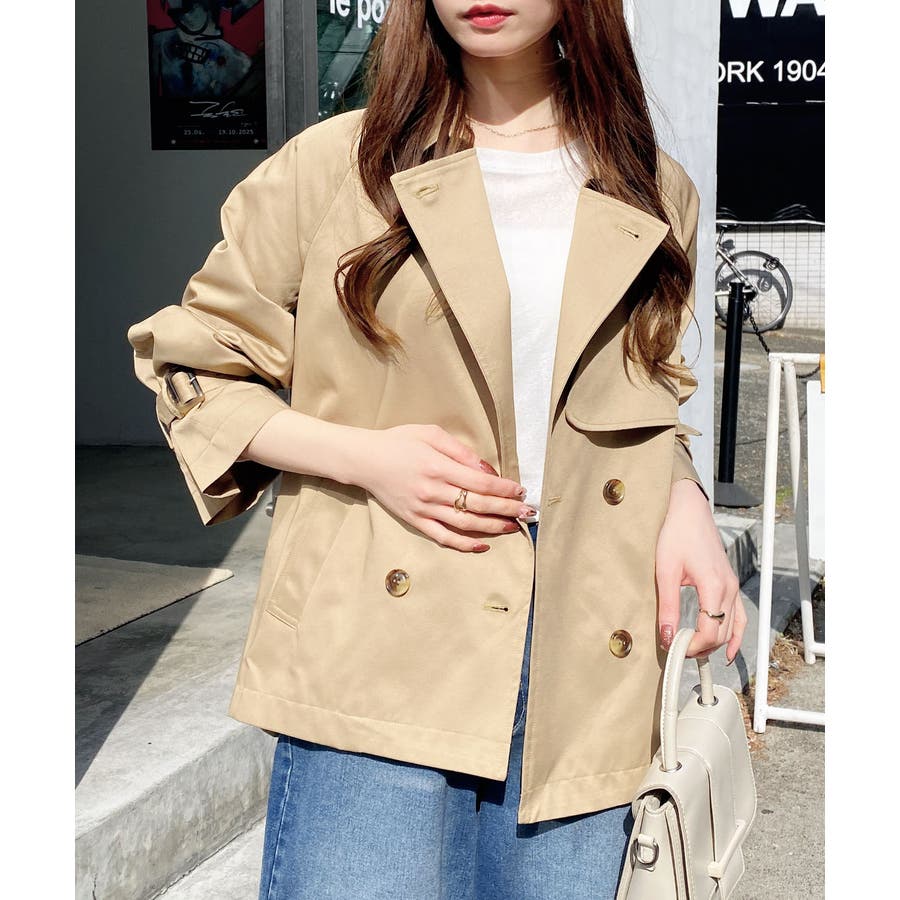 【羽織るだけでこなれ感漂うミドル丈トレンチコート】▼Design軽く着やすいのが嬉しいポイント。重く見えない短めの着丈で、羽織るだけでおしゃれに決まるのが魅力です。トレンチコートのディテールを取り入れて、きちんと感をプラスしました。フロントは印象的なダブルボタン仕様なので視線を上に引き上げ、スタイルアップ効果も狙えます。▼Stylingミドル丈なので、どんな身長の方でもバランス良く着こなせます◎シンプルなデザインと扱いやすいミドル丈で、デイリーに頼れる一枚です。パンツにもスカートにも合わせやすく、バサッと羽織るだけで大人見えする旬コーデが完成します。▼Recommend・春アウター・軽アウター・トレンチコート・ミドルジャケット