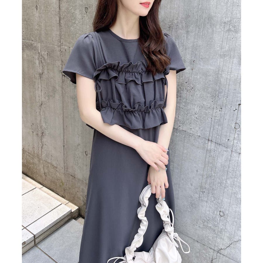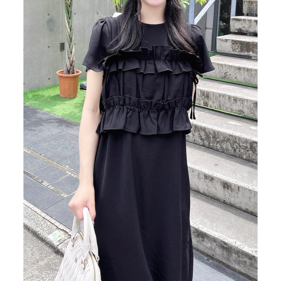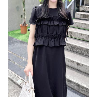 【フリルリボンビスチェで華やかに大人上品に仕上がるワンピース】