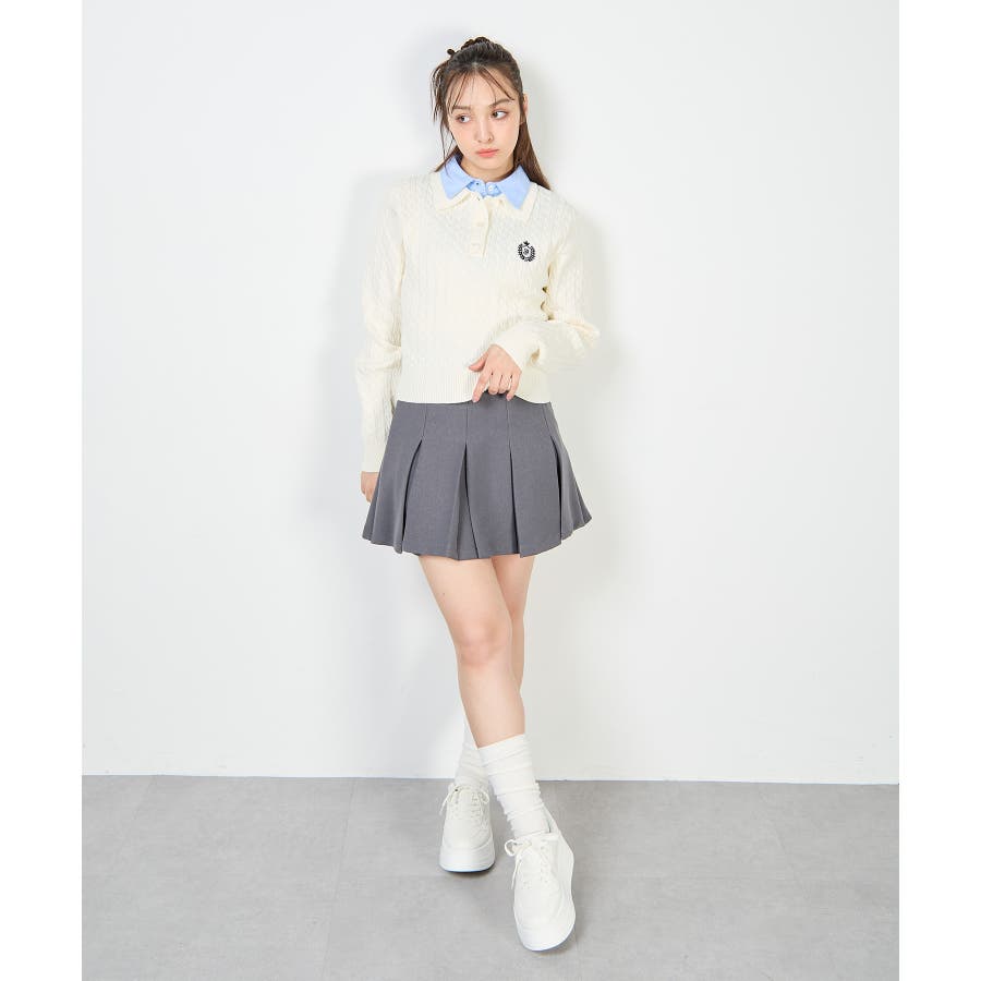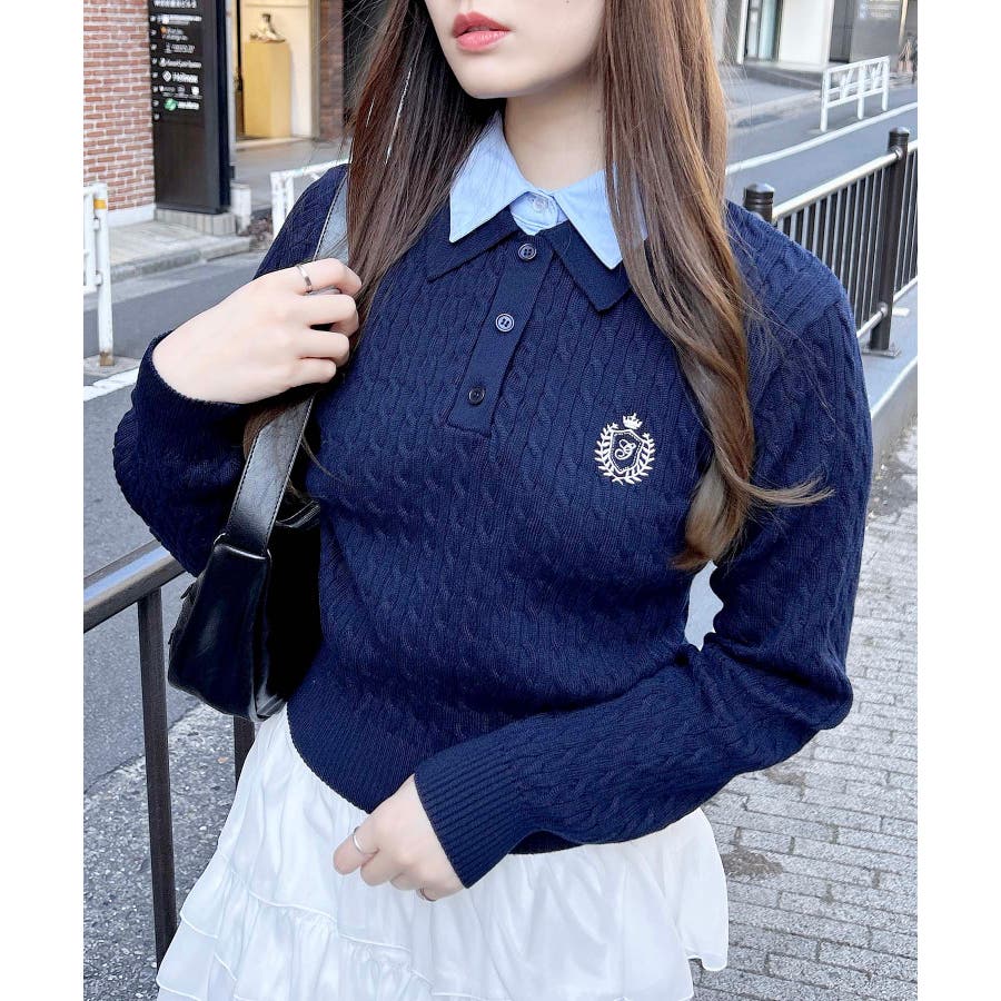 【ダブルカラーと刺繍の組み合わせがトレンドライクなケーブルポロニット】