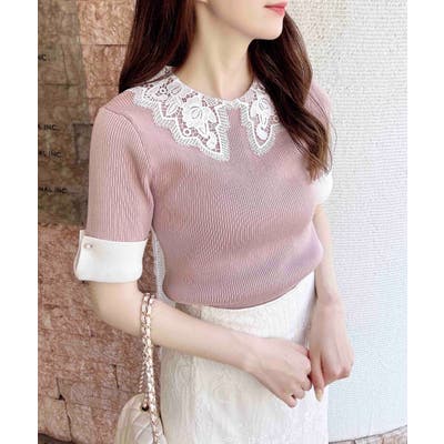 レース素材の襟できちんと感をだしつつ華やかな印象に◎