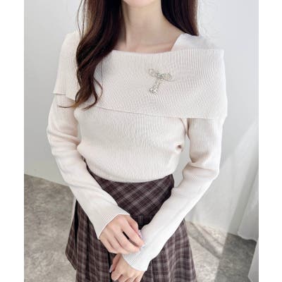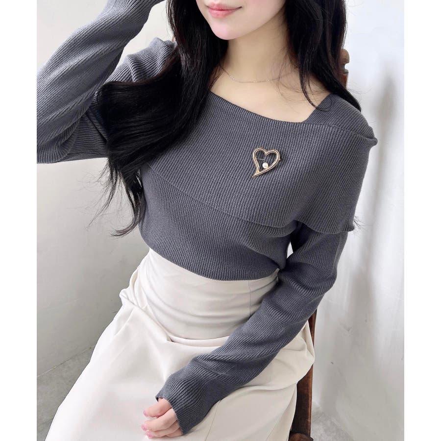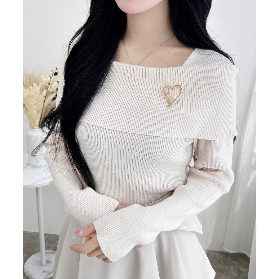 ★WEB限定アイテム★ 昨年大人気だったブローチ付ニットがWEB限定でリバイバル♡【オフショルデザインでレディな着こなしへと導くニットトップス】肩口にはマチが付いているので、ずれにくいのもポイントです。シンプルなワンカラーでどんなスタイルにも合わせやすく、シーンを選ばず大活躍。程よい裾丈はトップスインスタイルもすっきり着こなせます。取り外し可能なブローチがセットになっています。・ブローチ取り外し可【セット内容】ニット、ブローチ・カラー名によって付属ブローチのデザインが異なります【通常カラー】ハートモチーフブローチ 【/Aカラー】リボンモチーフブローチ詳しくは詳細画像をご確認ください。・ニット製品のため生地に伸縮性があり、サイズに若干の誤差が生じる場合がございます。予めご了承くださいませ。【以下オフホワイト参考。カラーにより多少の誤差あり】・透け感:やや透ける・伸縮性:あり・生地の厚さ:普通・裏地:なし