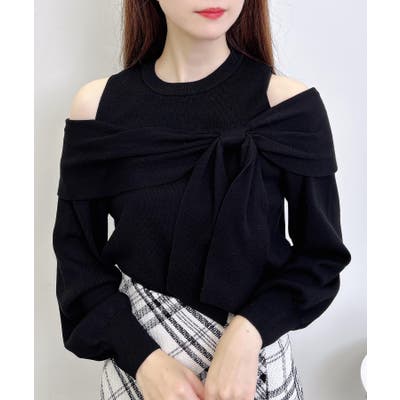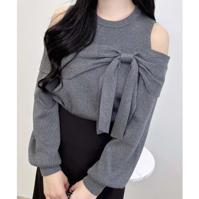 控えめな肩開きデザインと大きなリボンが特徴のニットが登場!