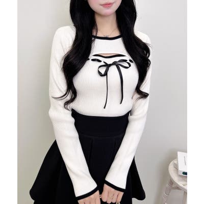 胸元のリボンとさり気ない肌見せがフェミニンな雰囲気を演出してくれます♡