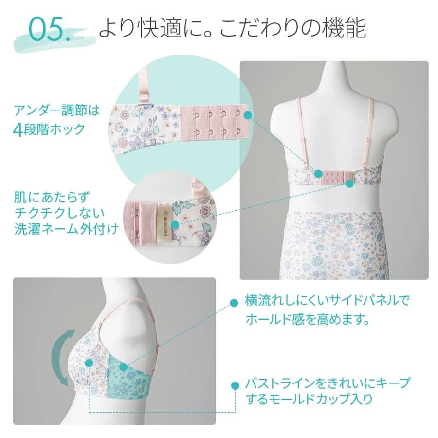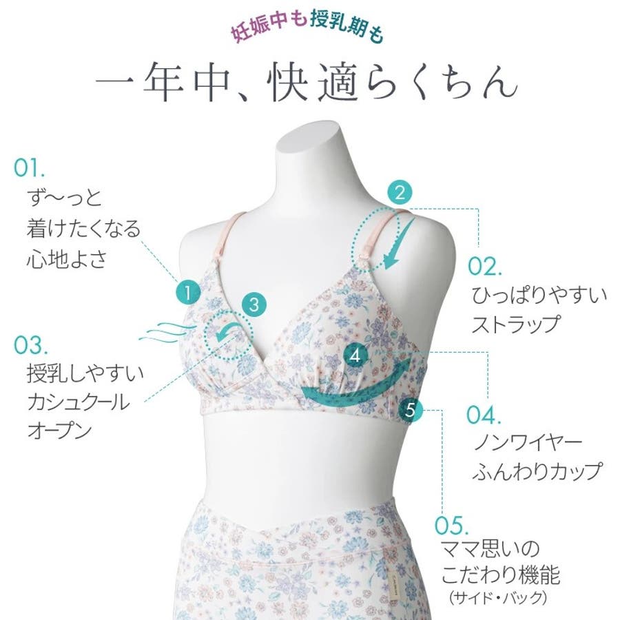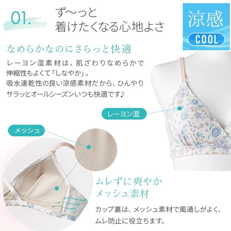 産前~産後も着用いただけます。 伸縮性が良く、なめらかなのにサラッとした肌触りの「涼感素材」は、ムレやすいバストを一年中快適&爽やかに。