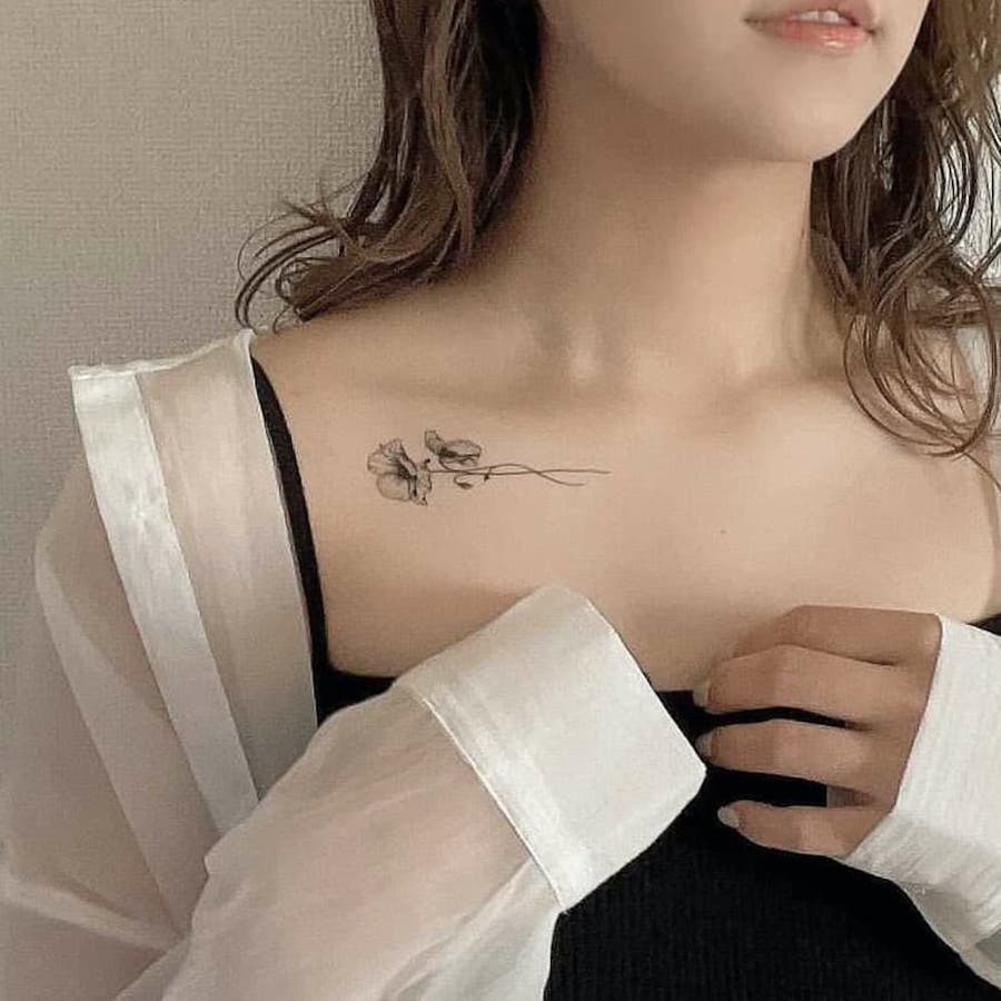 2輪の花 タトゥーシール 韓国 リアル シンプル フラワー 春 夏 セクシー