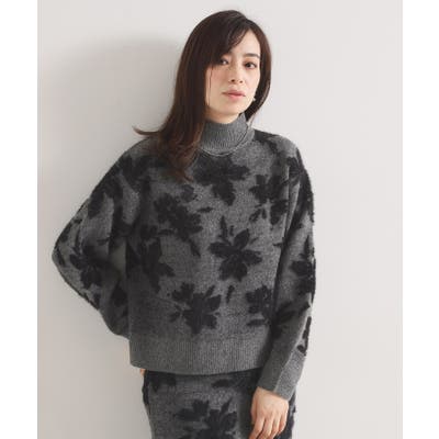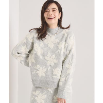 【手洗い可/セットアップ可】花柄フェザージャカードニット