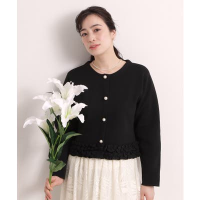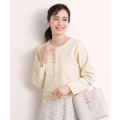 一枚で華のある裾フリルデザインがポイントのニットカーディガン。