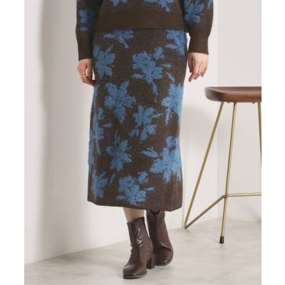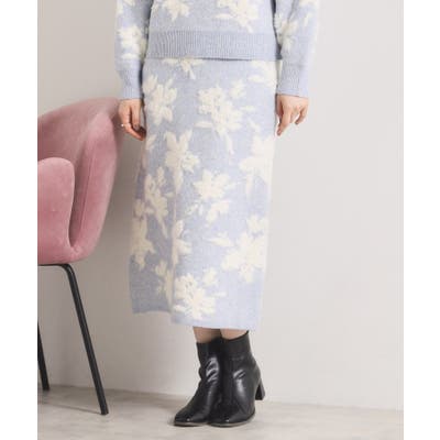 【手洗い可/セットアップ可】花柄フェザージャカードニットスカート