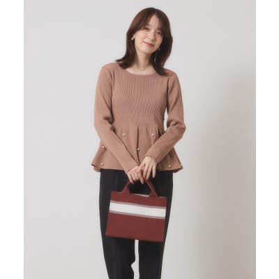 配色ラインがポイントのニットミニトート。