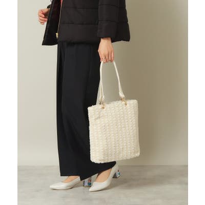 微配色のダイヤ柄ボアが可愛らしいトートバッグ。