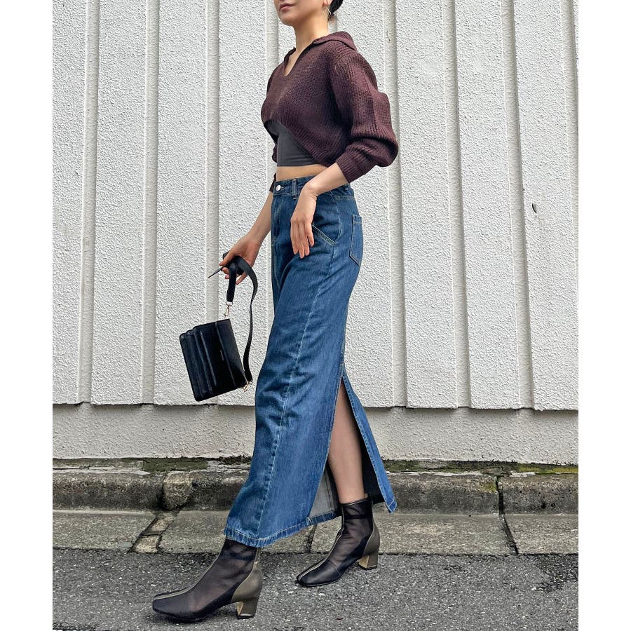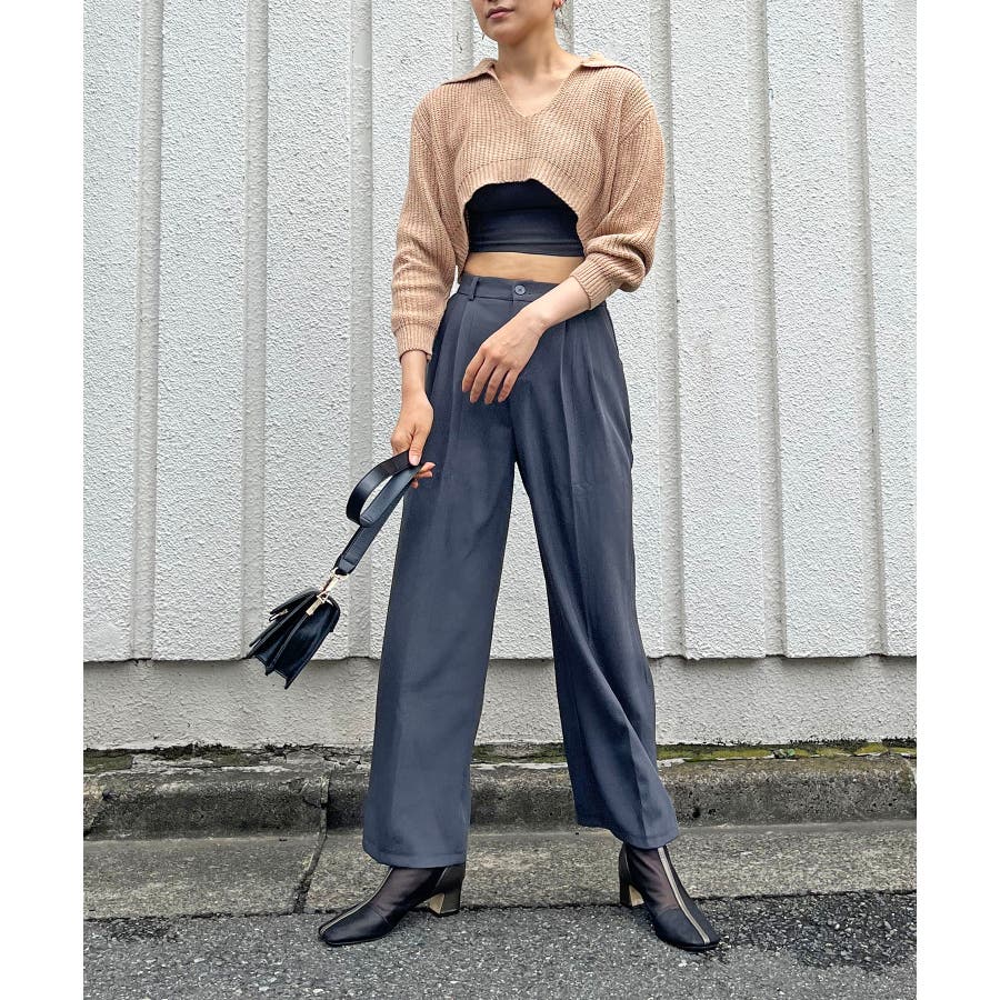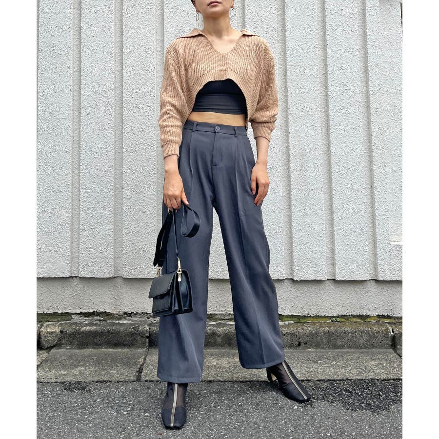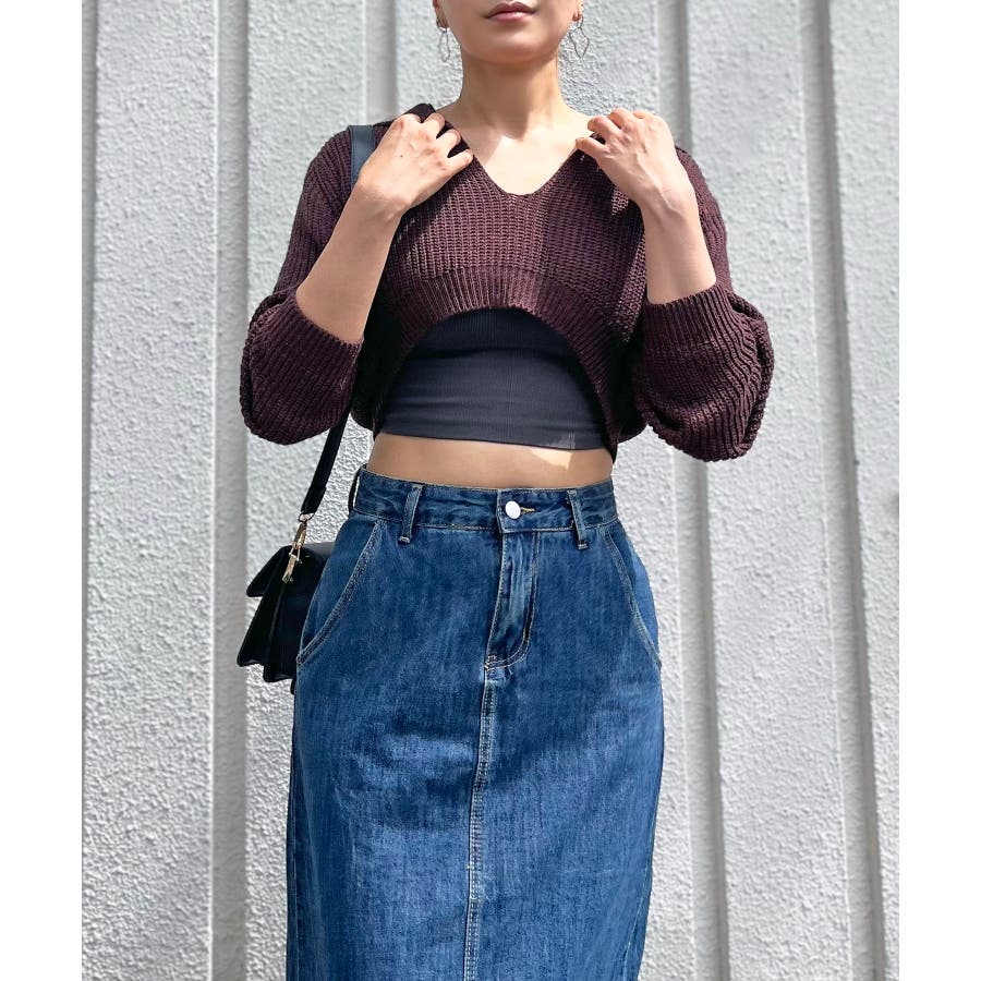 ニットを主役にした肌見せコーが楽しめます。