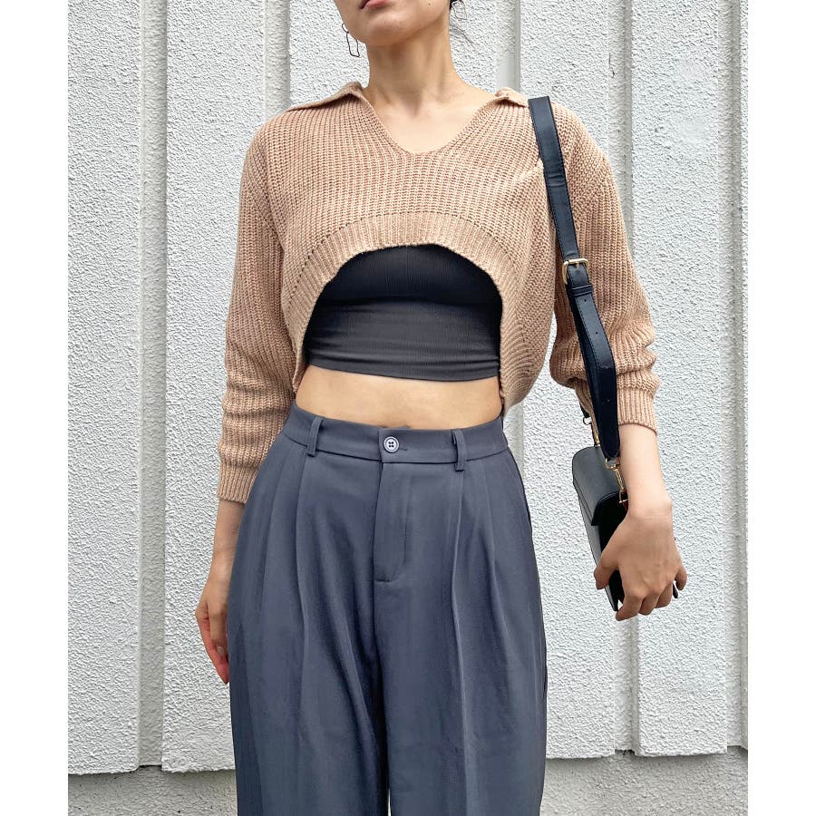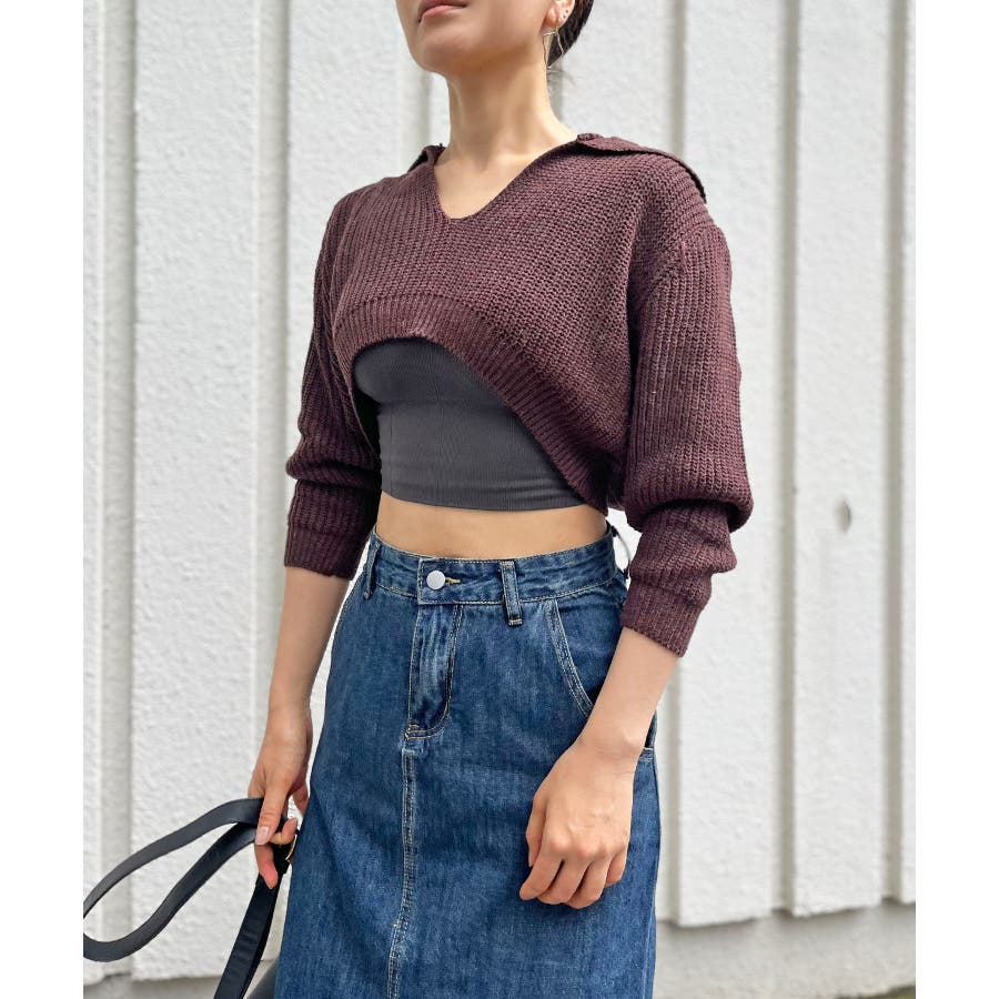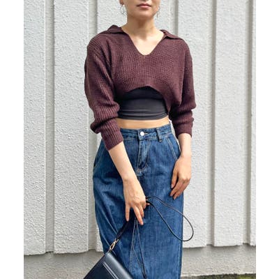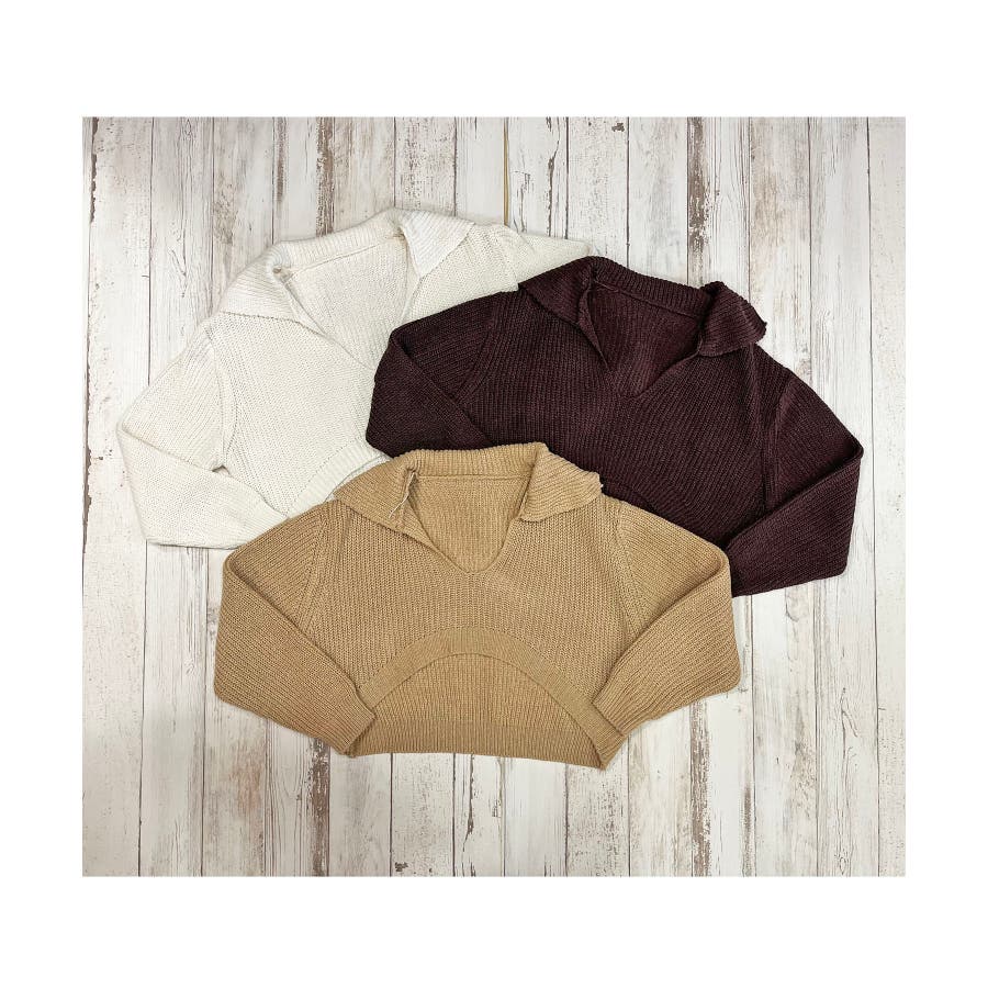 ポロカラーがポイントになったショートのニットトップス。