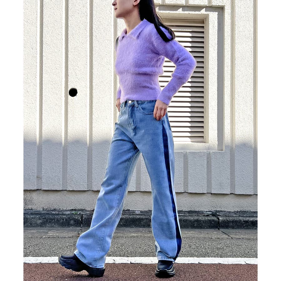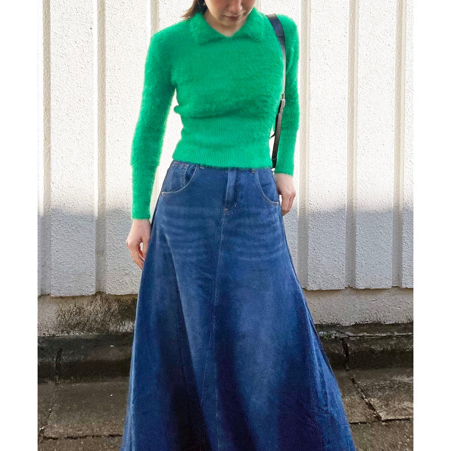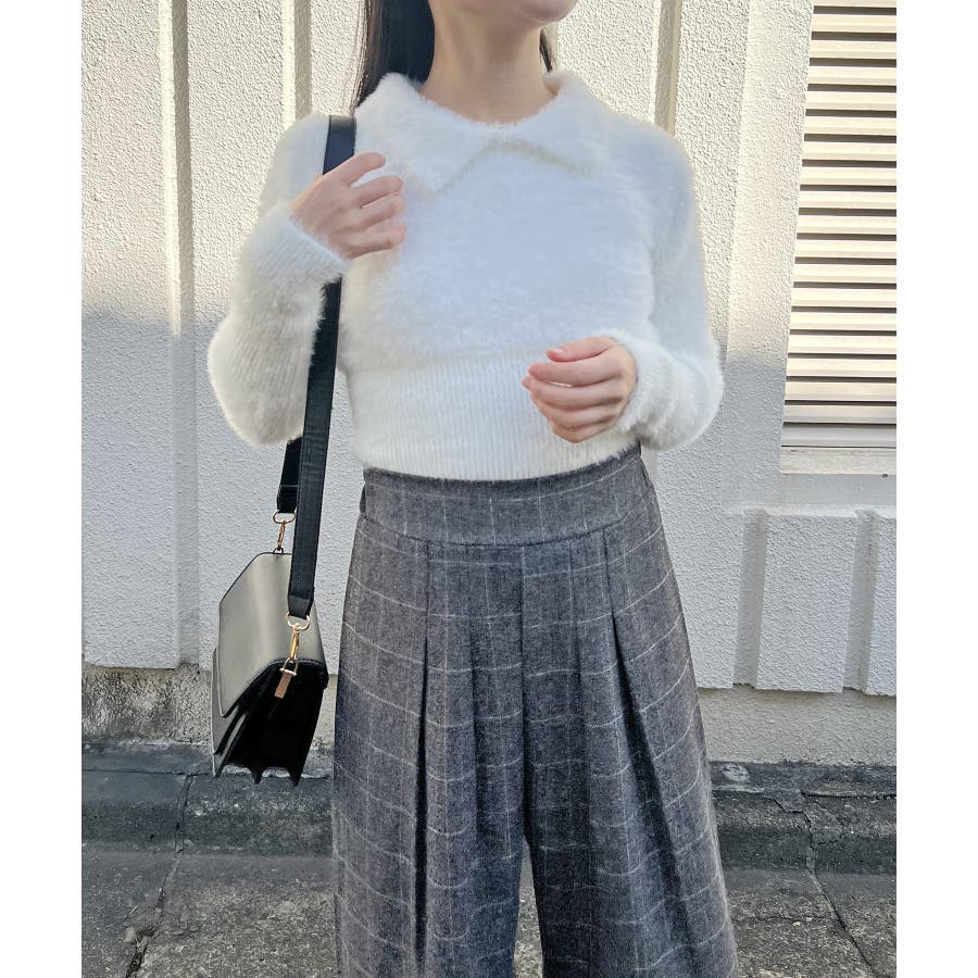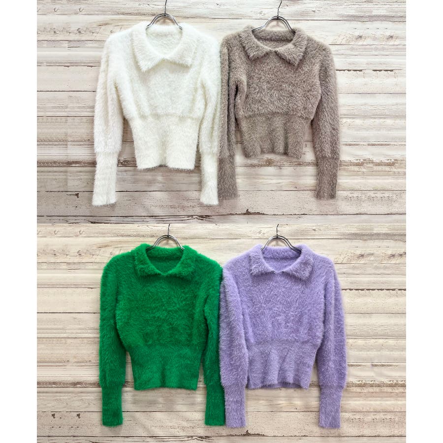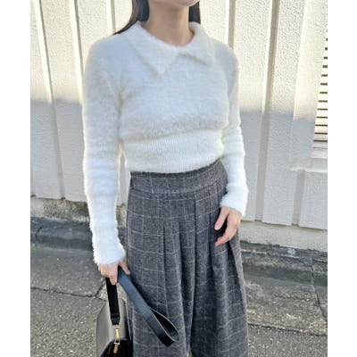 衿付きシャギーニットプルオーバー