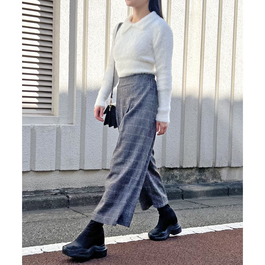 ボリューム感のあるデザインのボトムスでもすっきりと着こなせます◎