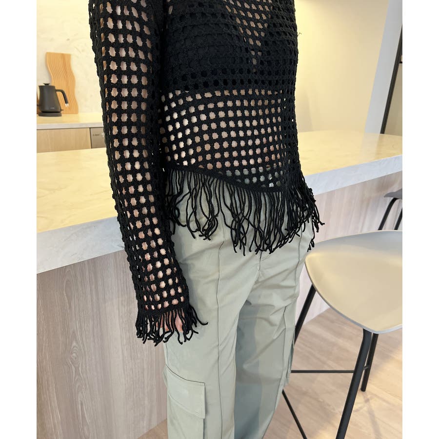 袖口、裾にはフリンジを施しアクセントをプラス。