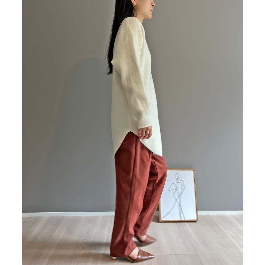 モヘアタッチの起毛感のある、長め丈ニット。