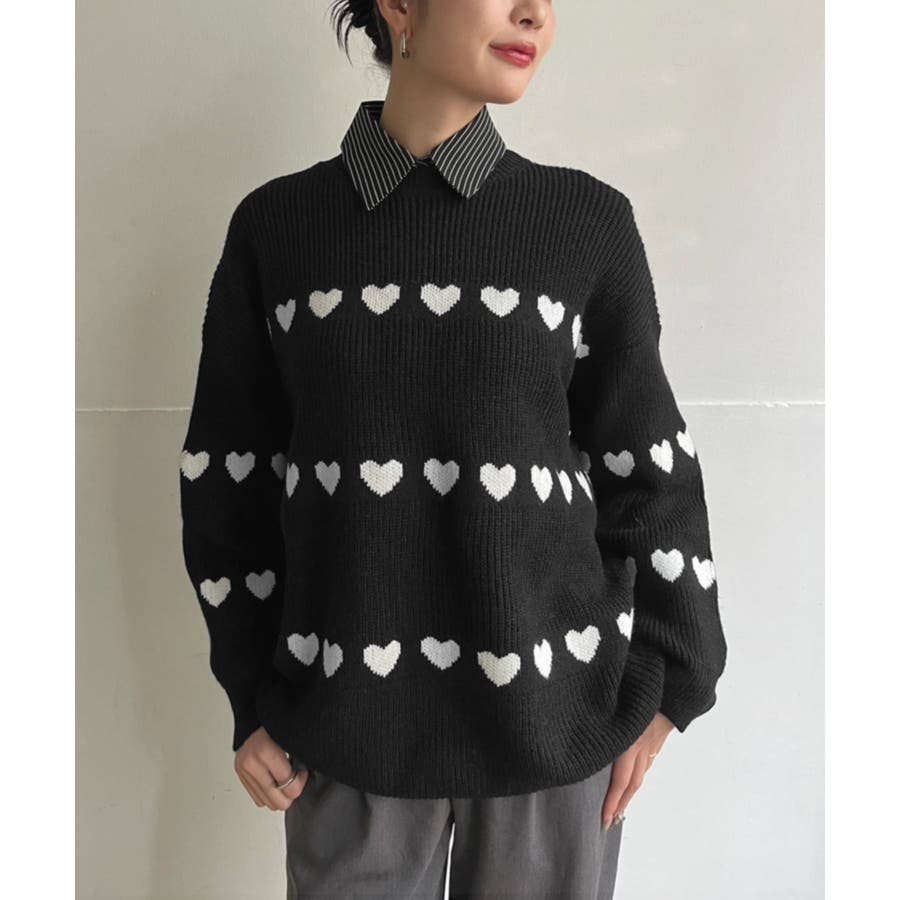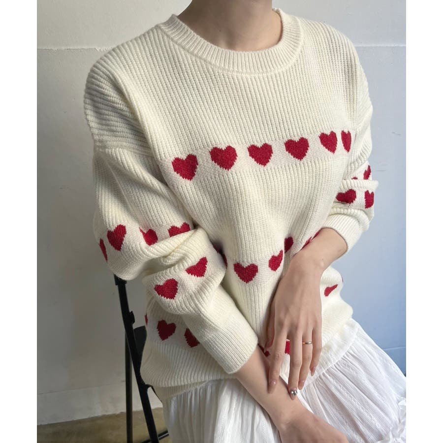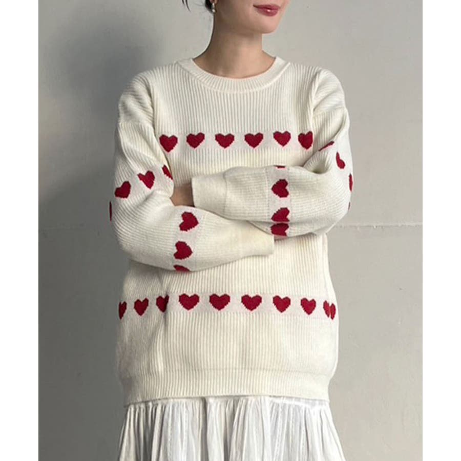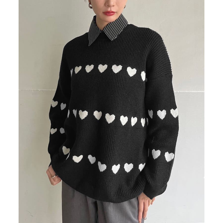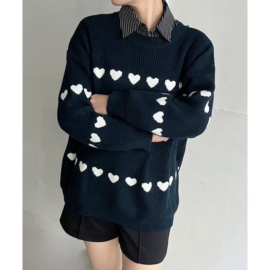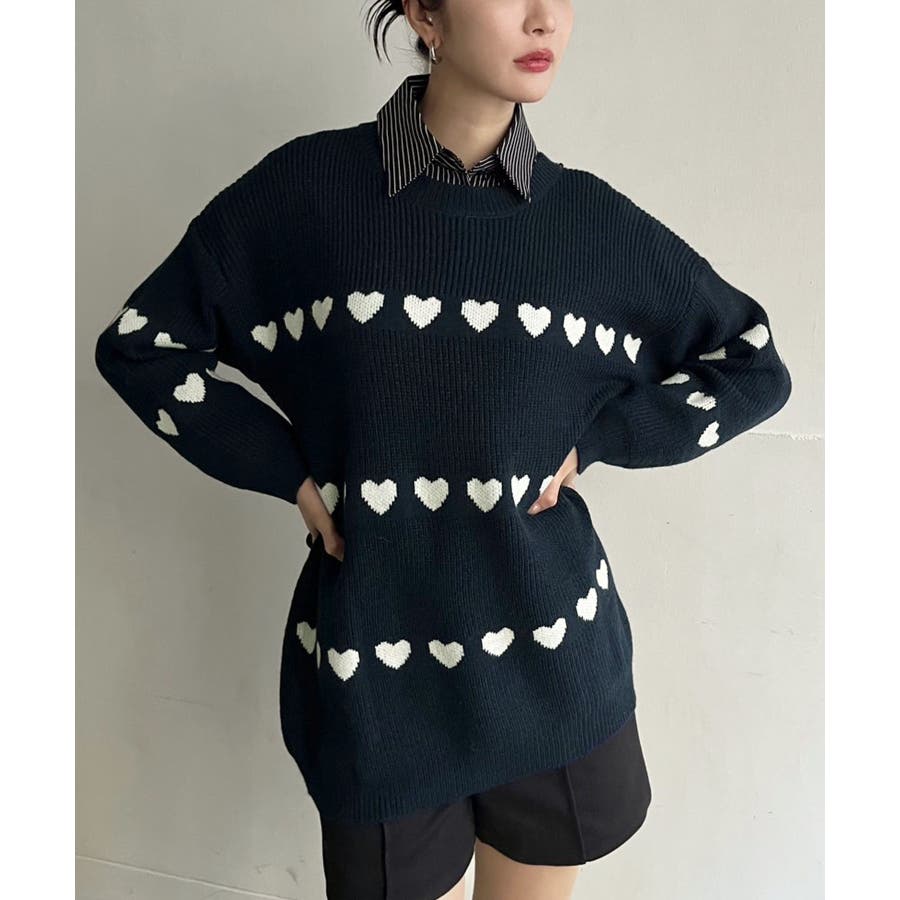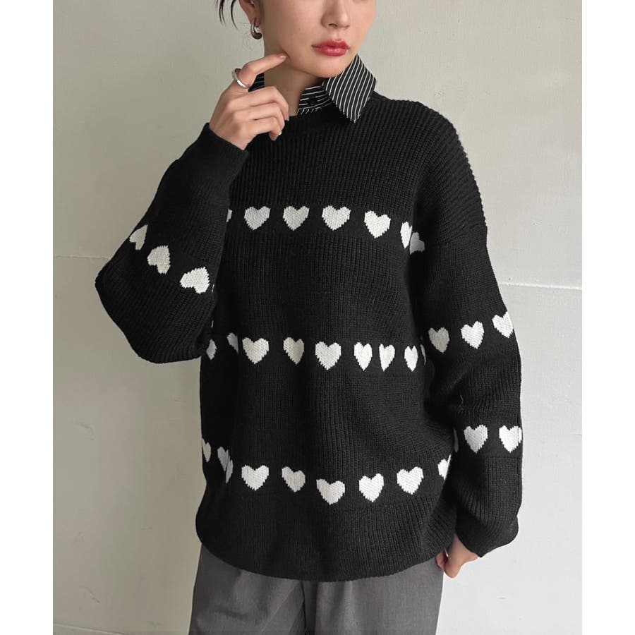 ジャガード編みのハートシェイプが目を惹くオーバーサイズニット。