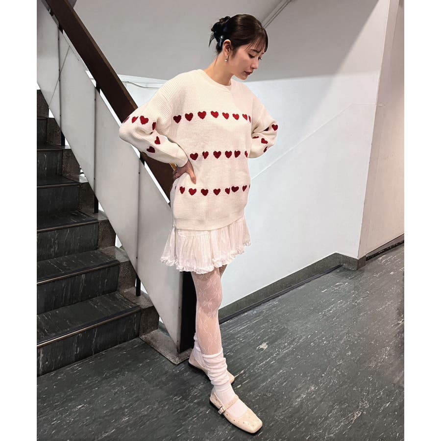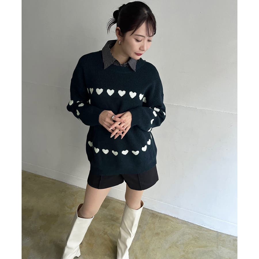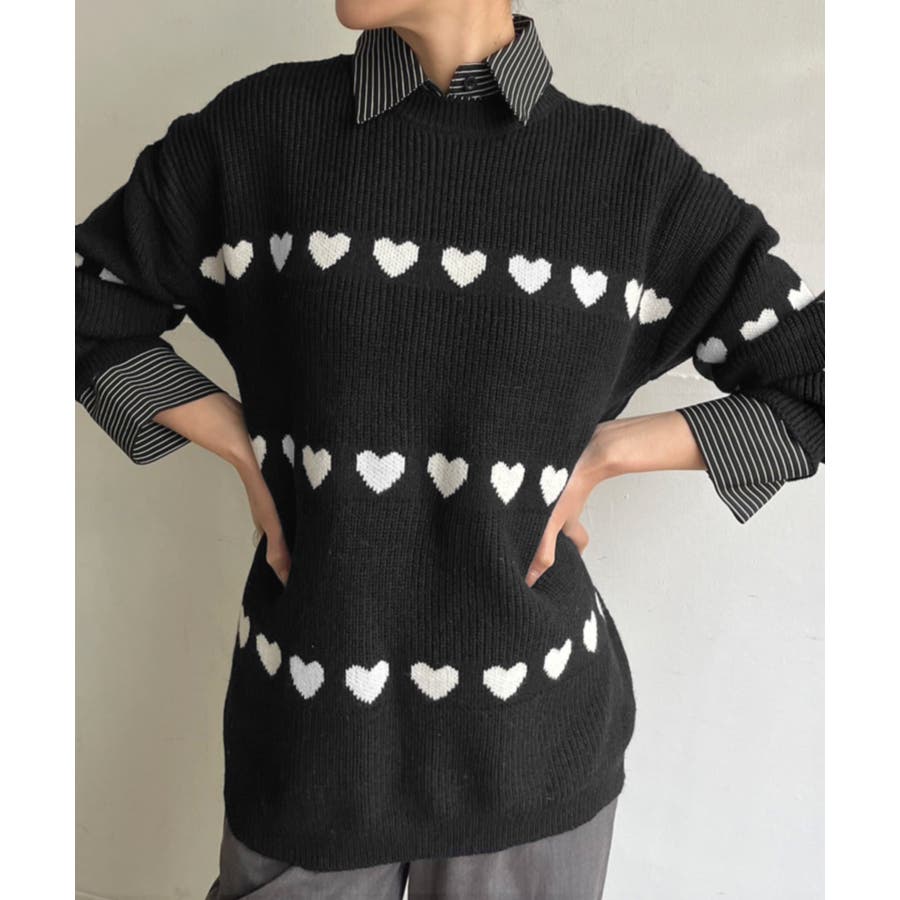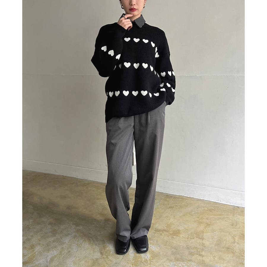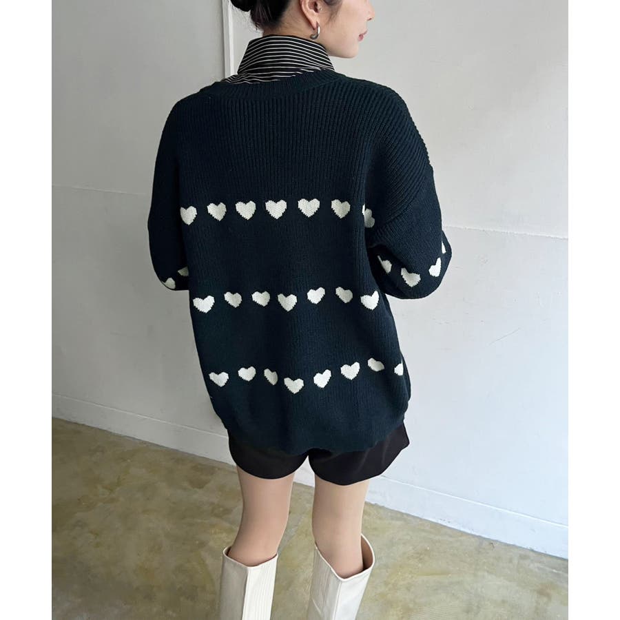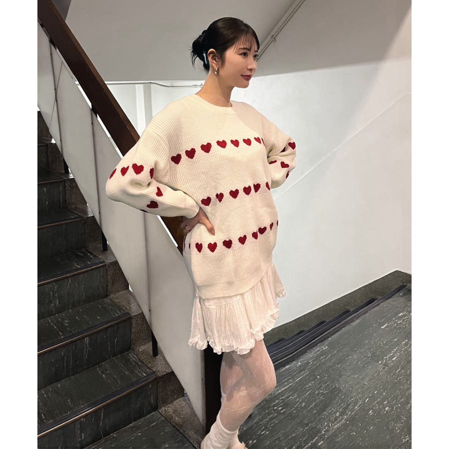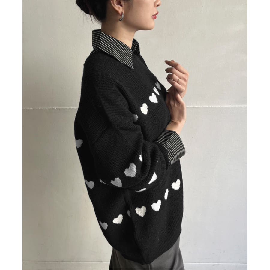 ジャガード編みのハートシェイプが目を惹くオーバーサイズニット。